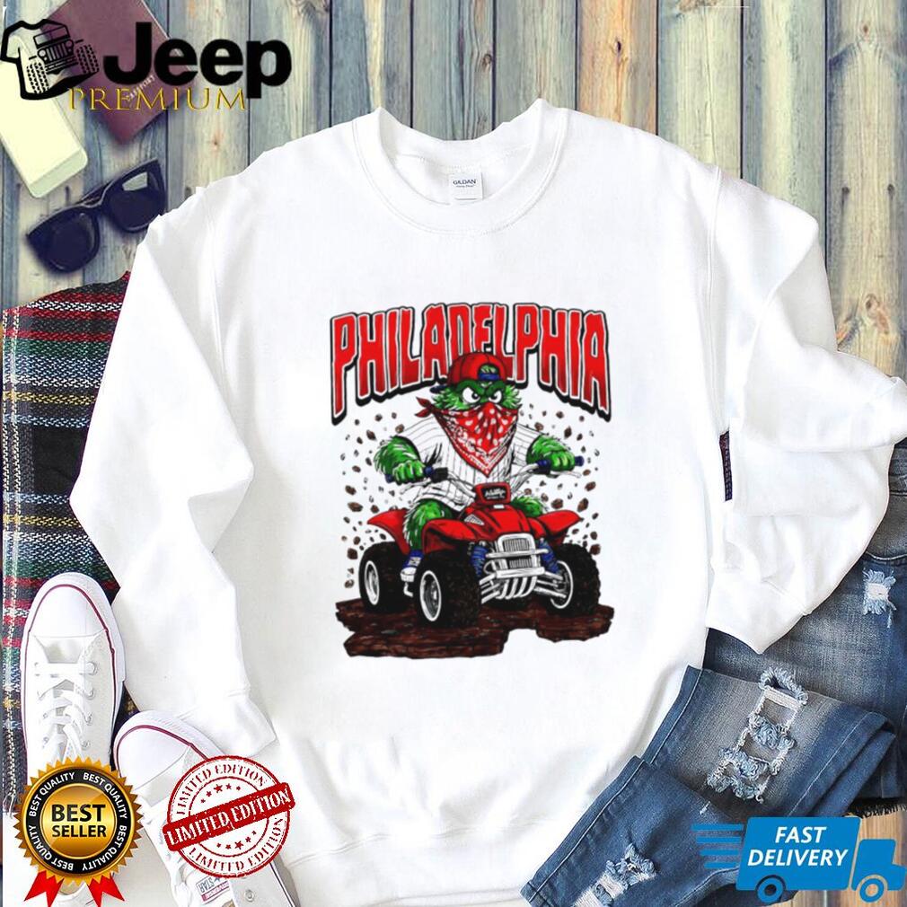 (Philadelphia Phillies Gritty Mascot Riding ATV Red Quad T Shirt)Apr 12