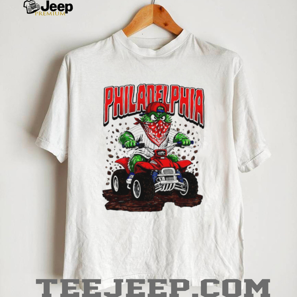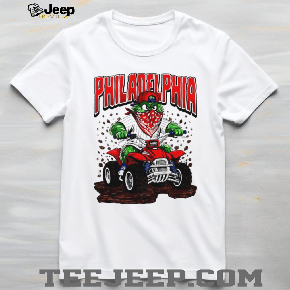 (Philadelphia Phillies Gritty Mascot Riding ATV Red Quad T Shirt)The Ultimate Everyday Essential Elevate your wardrobe with the signature Teejeep touch. Our premium t-shirts are crafted for those who demand the perfect balance of rugged durability and cloud-like softness. Whether you’re hitting the streets or relaxing at home, this is the tee you’ll reach for every time.