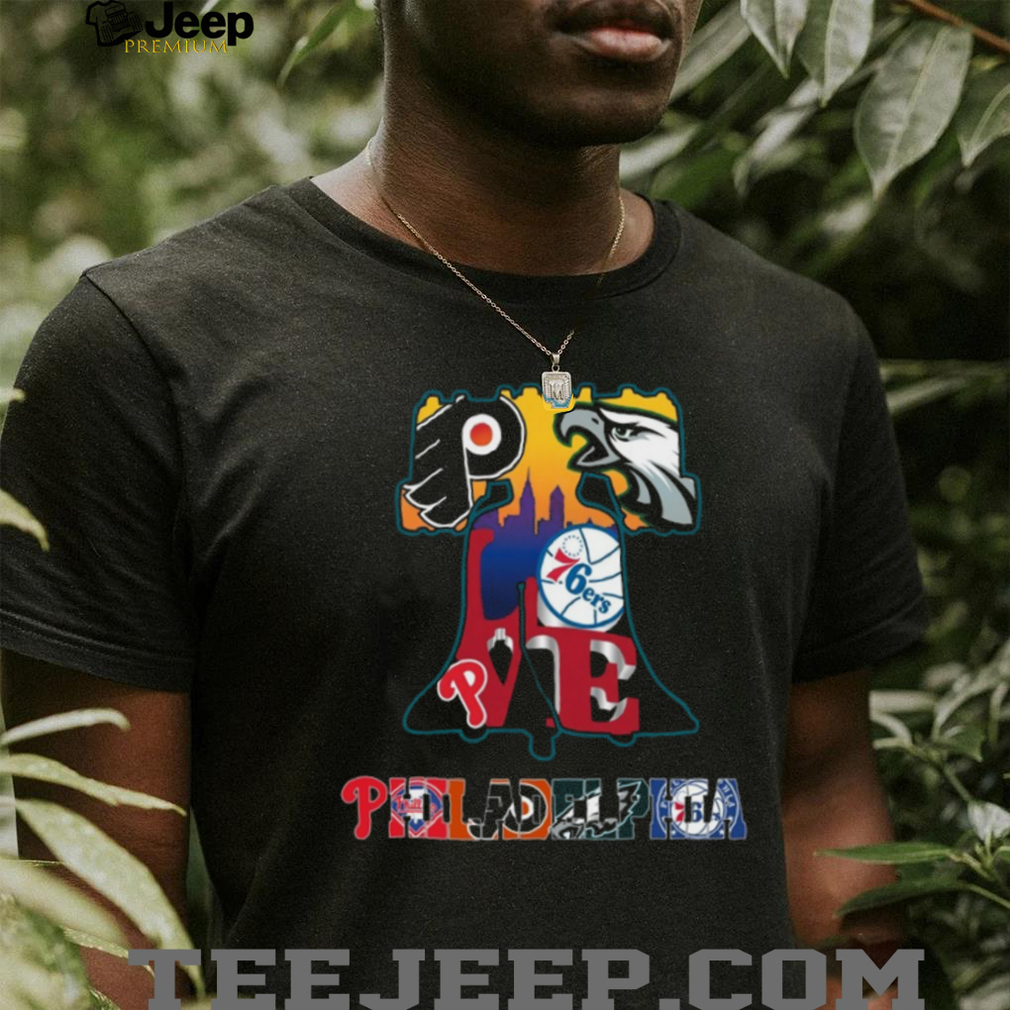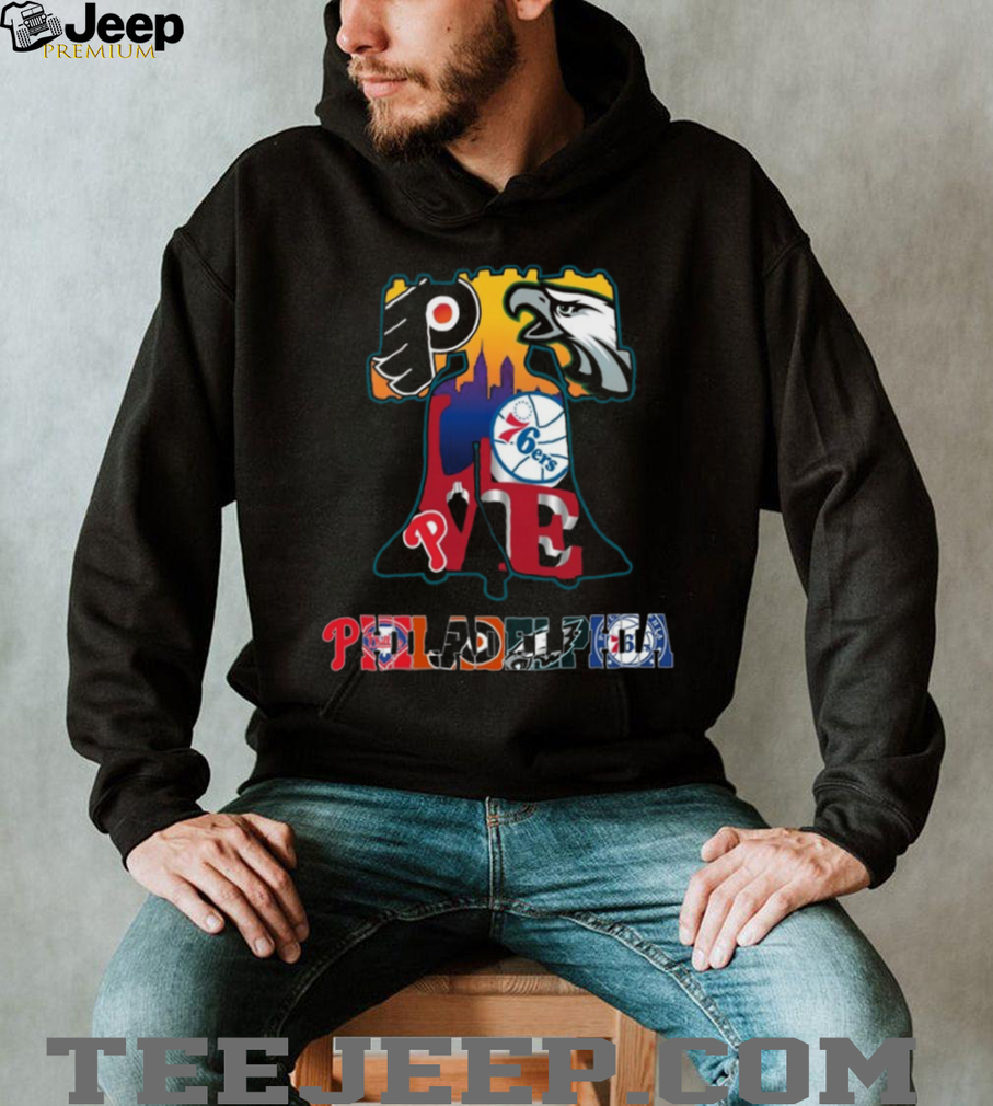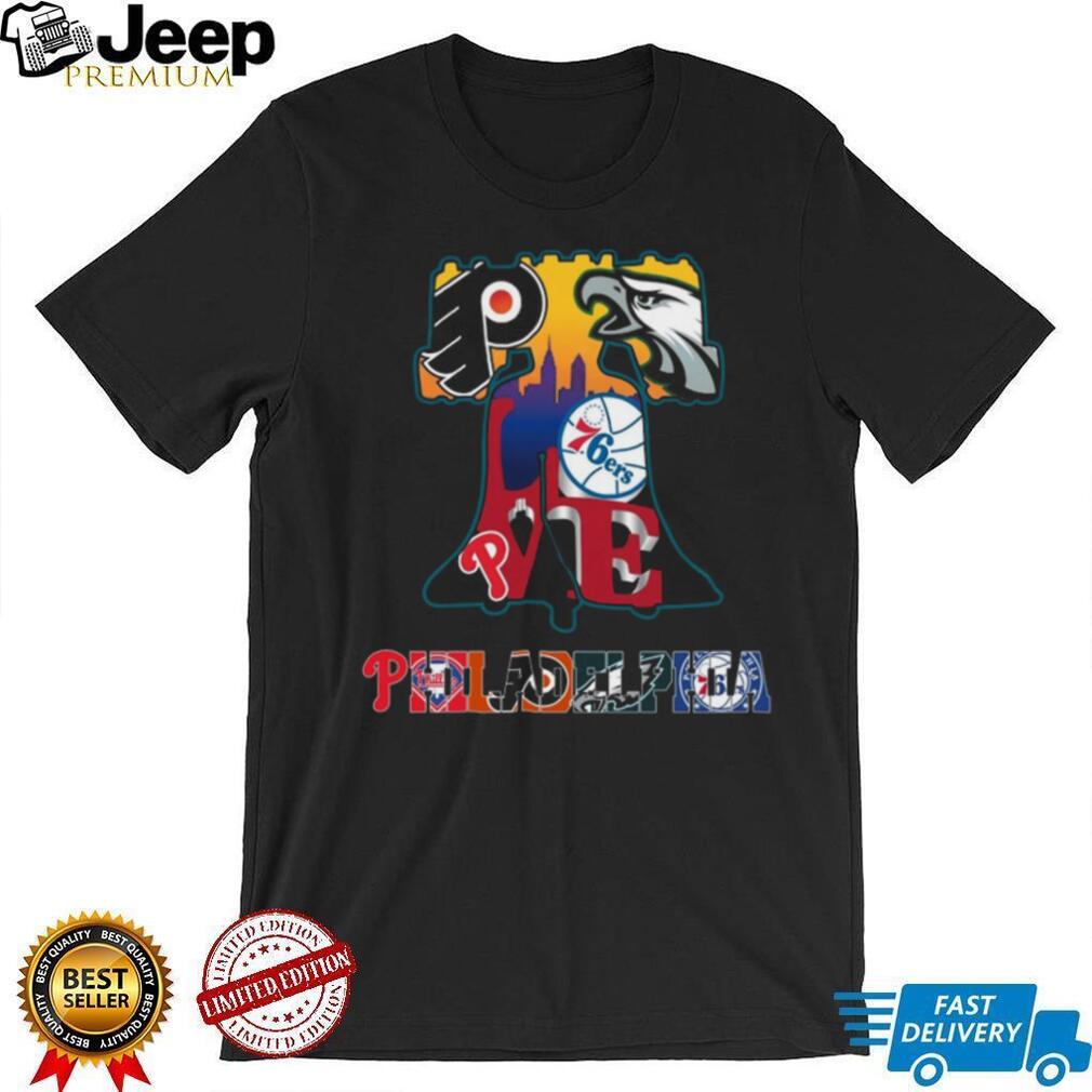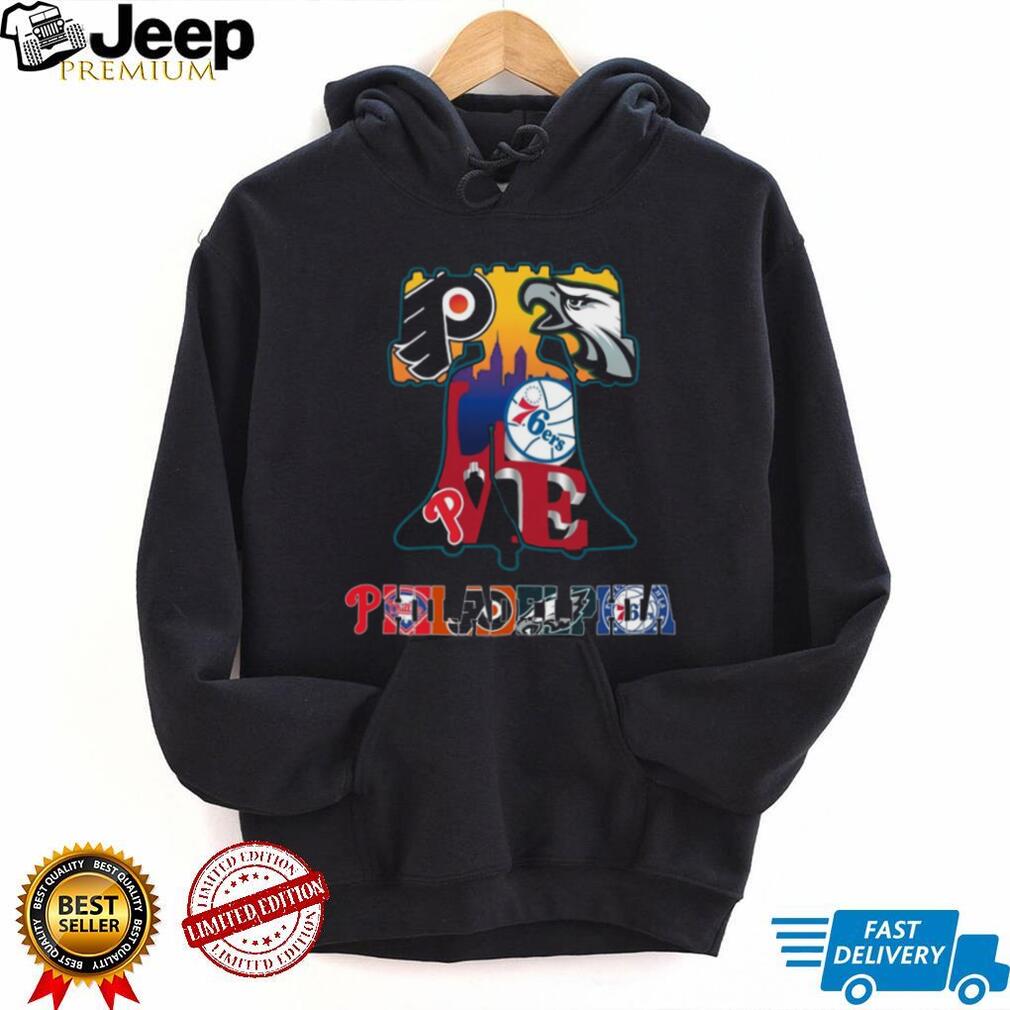 (Philadelphia Sports Teams Liberty Bell Skyline Coffee T Shirt)