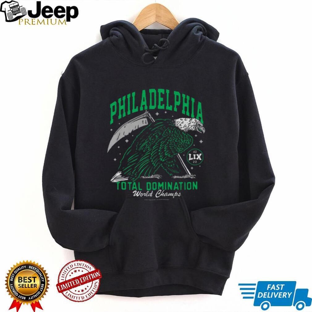 Celebrate Philadelphia’s sports dominance with this “Total Domination” World Champs Tee! It’s the perfect way to show your love for all your favorite Philly teams. Whether you’re an Eagles fanatic, a Phillies phanatic, or just love all things Philadelphia sports, this tee is a must-have.