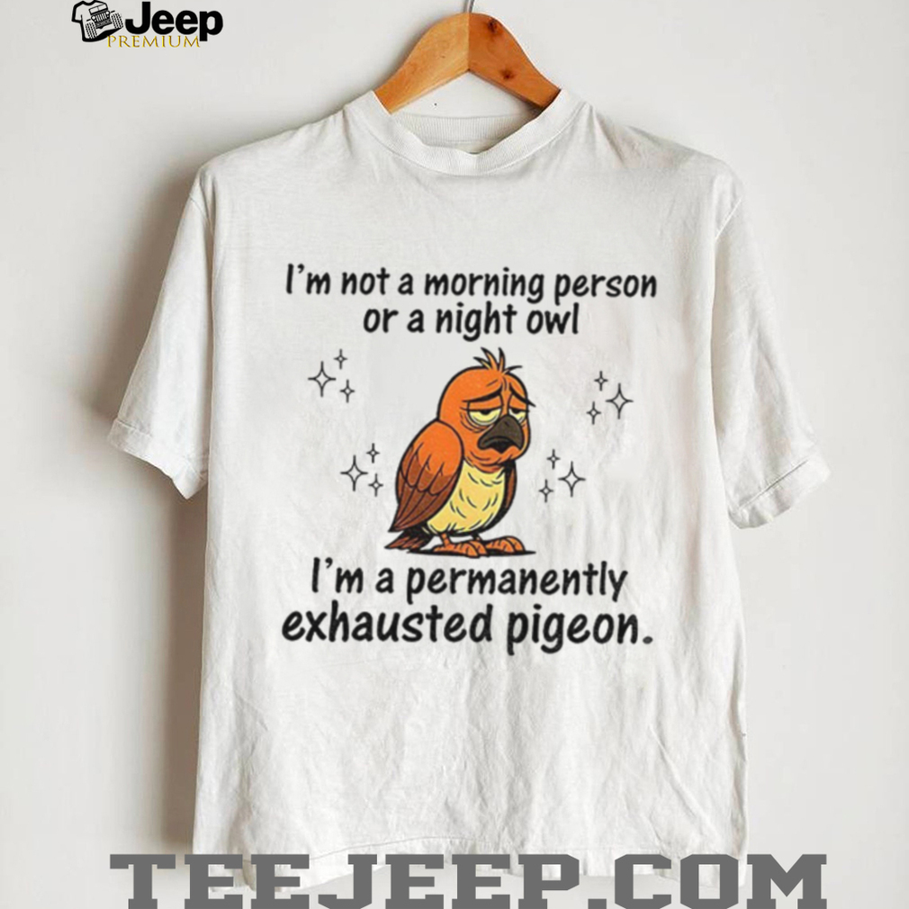 If you’ve transcended the labels of “morning person” and “night owl” into a realm of eternal weariness, then our “Pigeon I’m not a morning person or a night owl I’m a permanently exhausted pigeon shirt” is your anthem! This Exhausted pigeon shirt perfectly captures the spirit of enduring fatigue with a dash of self-aware, humorous charm. It’s the ultimate funny bird tee for those who feel a deep, spiritual connection to the perpetually tired pigeon.