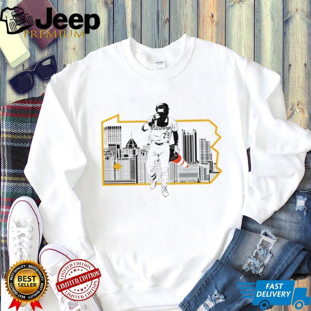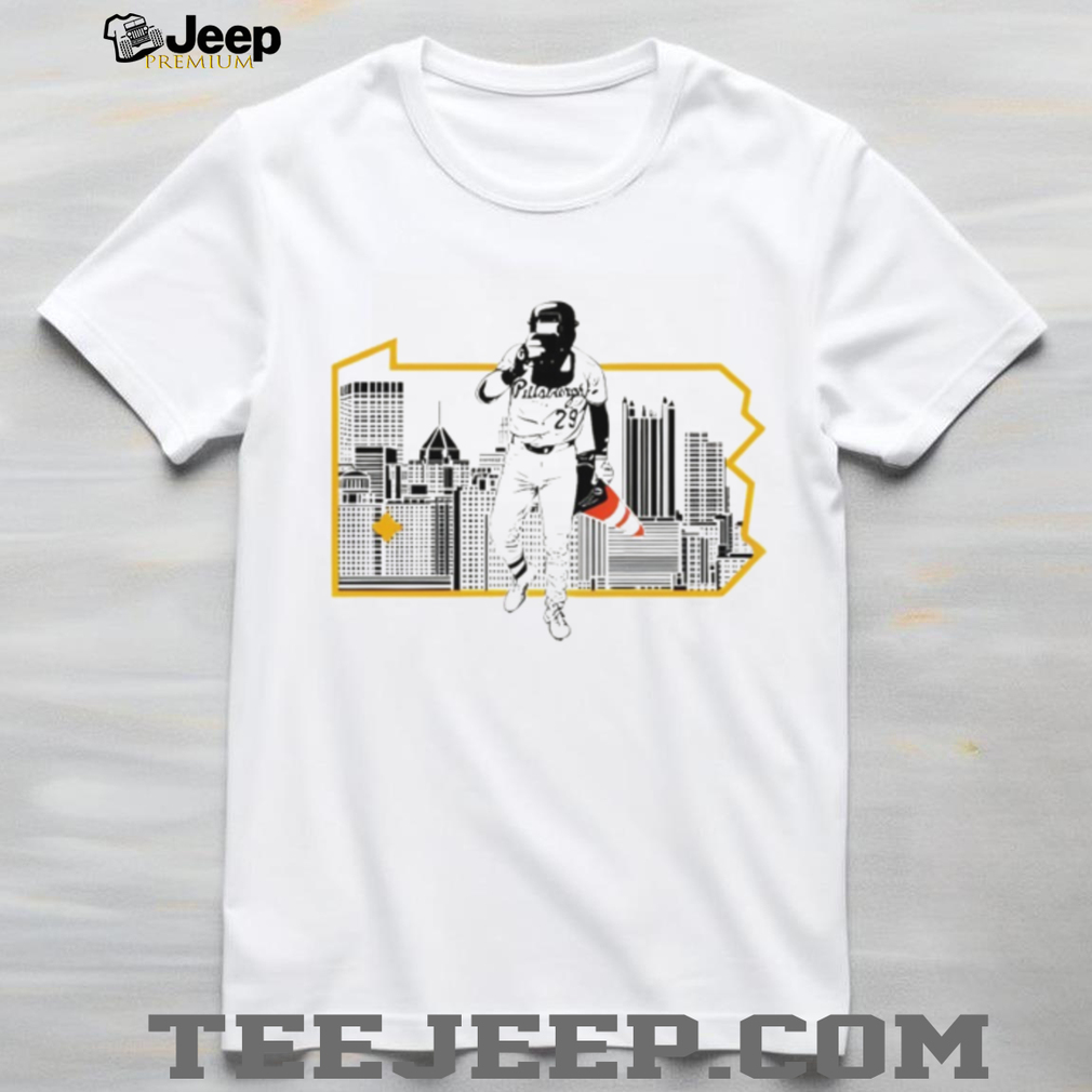 A stunning Pittsburgh skyline silhouette tee celebrating the city’s baseball heritage. Elegant, minimal, and full of Steel City pride for every Pirates fan.