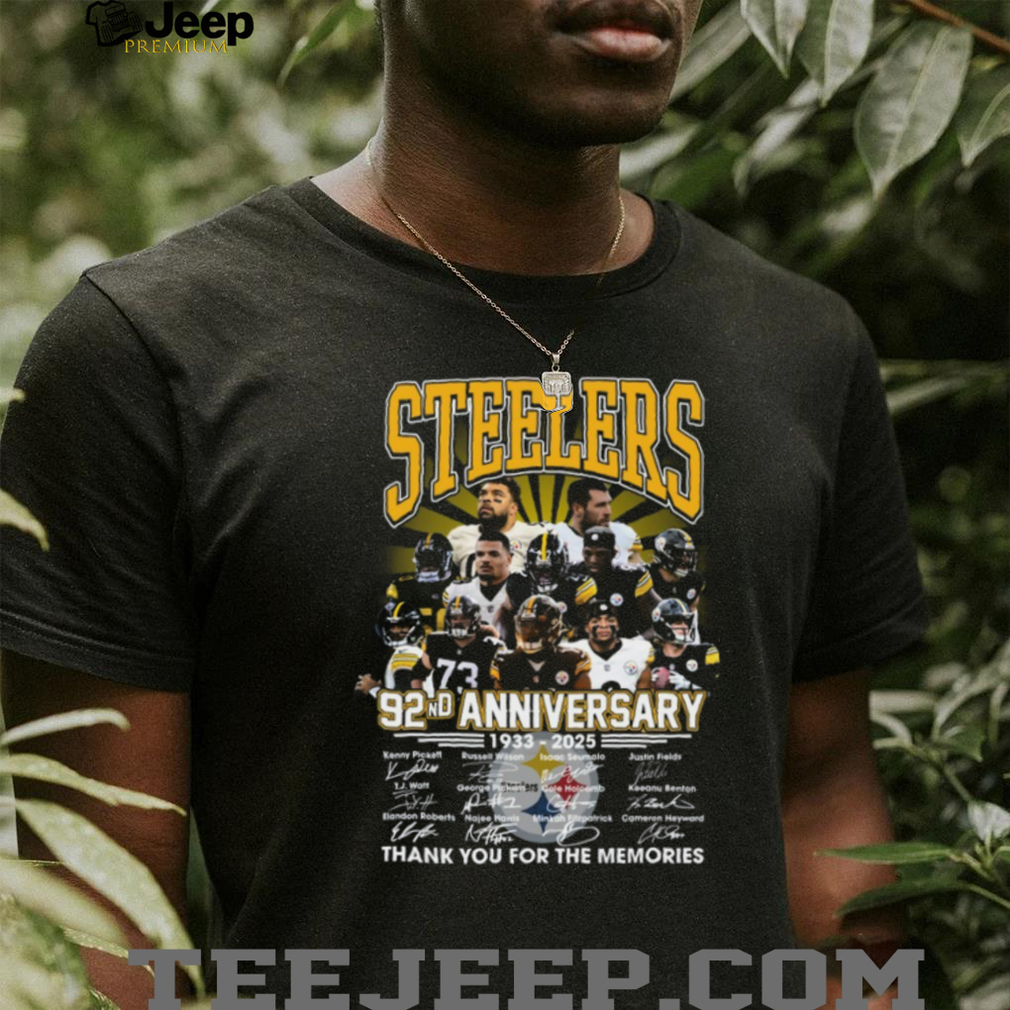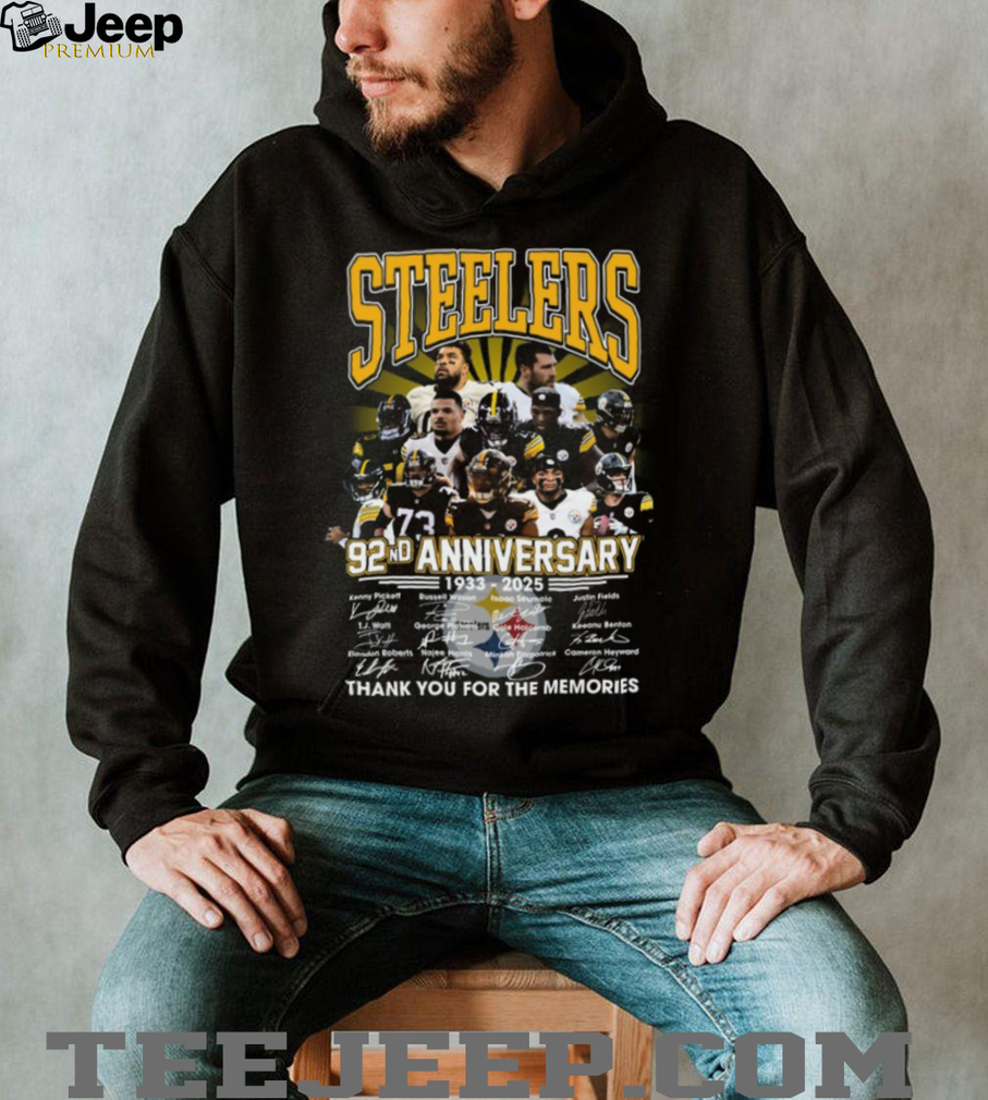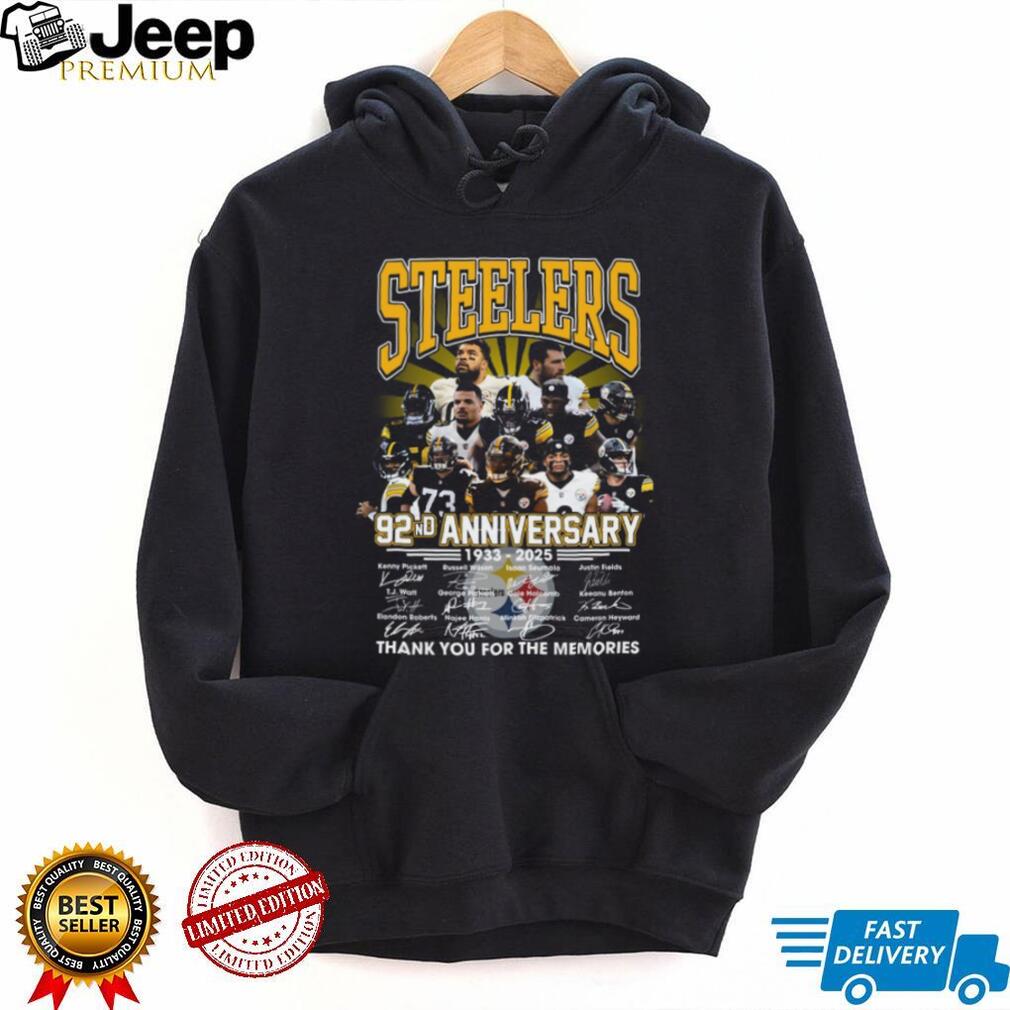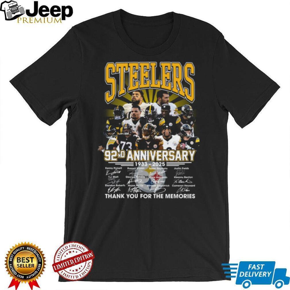 👕 About Pittsburgh Steelers 92nd Anniversary 1933 2025 Roster Signatures T Shirt