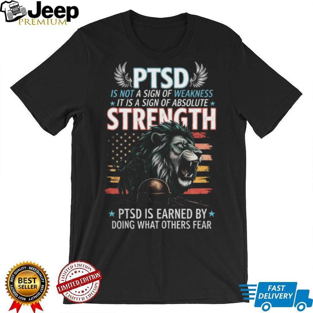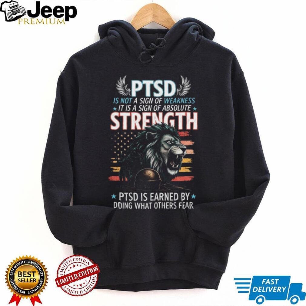 Still, your point is germane. Matches that started at 12:00 pm in the three host countries would air at times convenient to Europe, Africa, and parts of Asia. And, of course, while it would be inconvenient to those in those time zones, since it’s a weekday and most people will be at work, since some places in the world will be inconvenienced, regardless of when the matches start, it makes sense to schedule PTSD Strength Lion Military Veteran Support American Flag T Shirt and mid-day games. The early illustrations of game/ hotel packages are frighteningly high, particularly as the competition reaches its climax. However, it’s a market and there will be those willing to pay, particularly in the corporate sector but the market will adjust if prices are too high to sustain demand. Regular football fans are likely to be priced out but that’s been the trend lately.