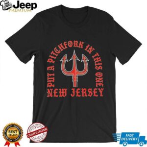 Ready to stir up some fun with a shirt that’s anything but ordinary? The “Put a Pitchfork in this one new jersey logo shirt” isn’t just a piece of clothing; it’s a statement, a conversation starter, and a nod to a unique sense of humor. Perfect for those who appreciate witty designs and want to stand out from the crowd, this shirt blends a classic New Jersey vibe with an unexpected twist. It’s for the bold, the playful, and anyone who enjoys a good laugh, whether you’re from the Garden State or just love its spirit. This tee is designed to bring a smile to your face and those around you, making every day a little more interesting.