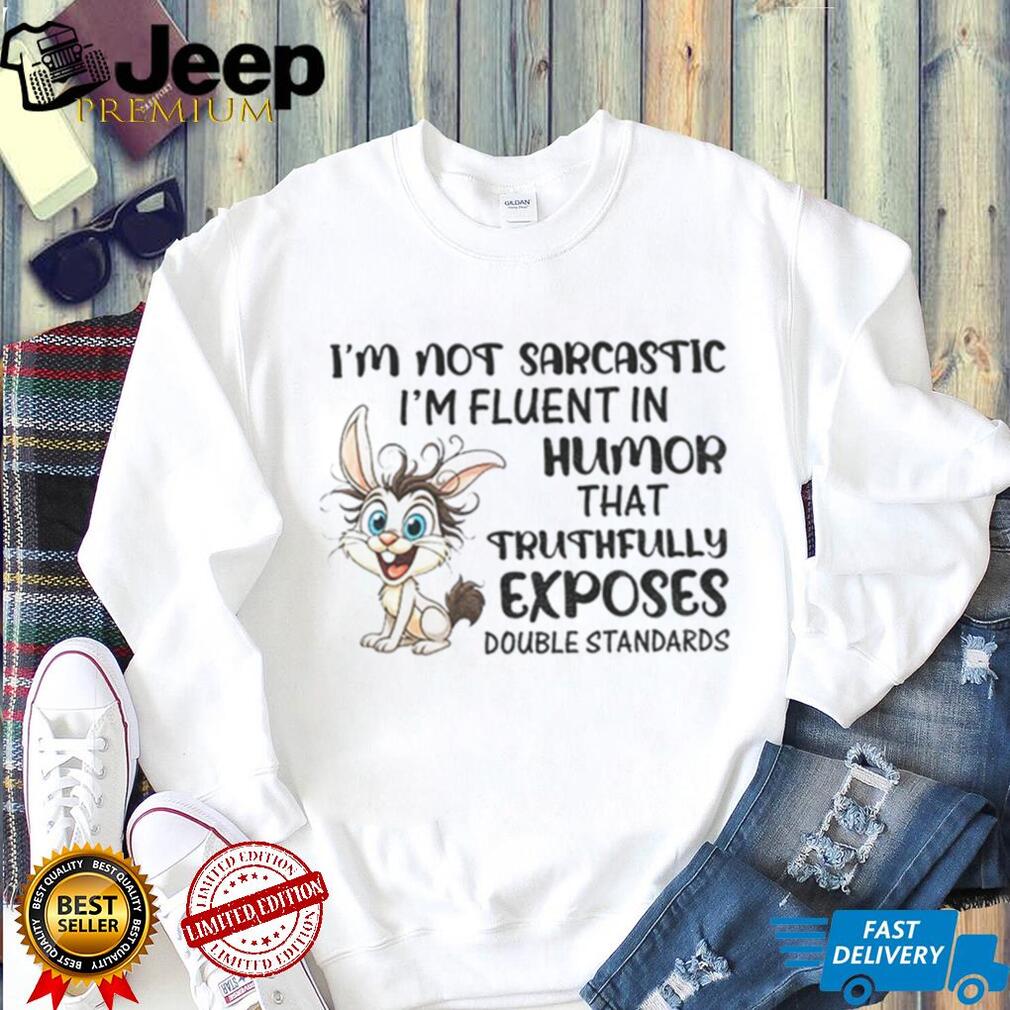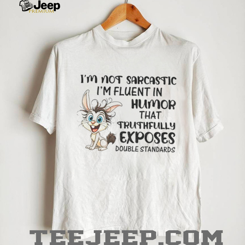 Do you communicate with wit and irony that often sails over people’s heads? This Rabbit I’m not sarcastic I’m fluent in humor shirt is designed for you. It’s a bold statement piece for those who use humor to expose life’s little absurdities and double standards. Express your unique perspective with a shirt that speaks volumes without saying a word. Perfect for people that love sarcastic comments.