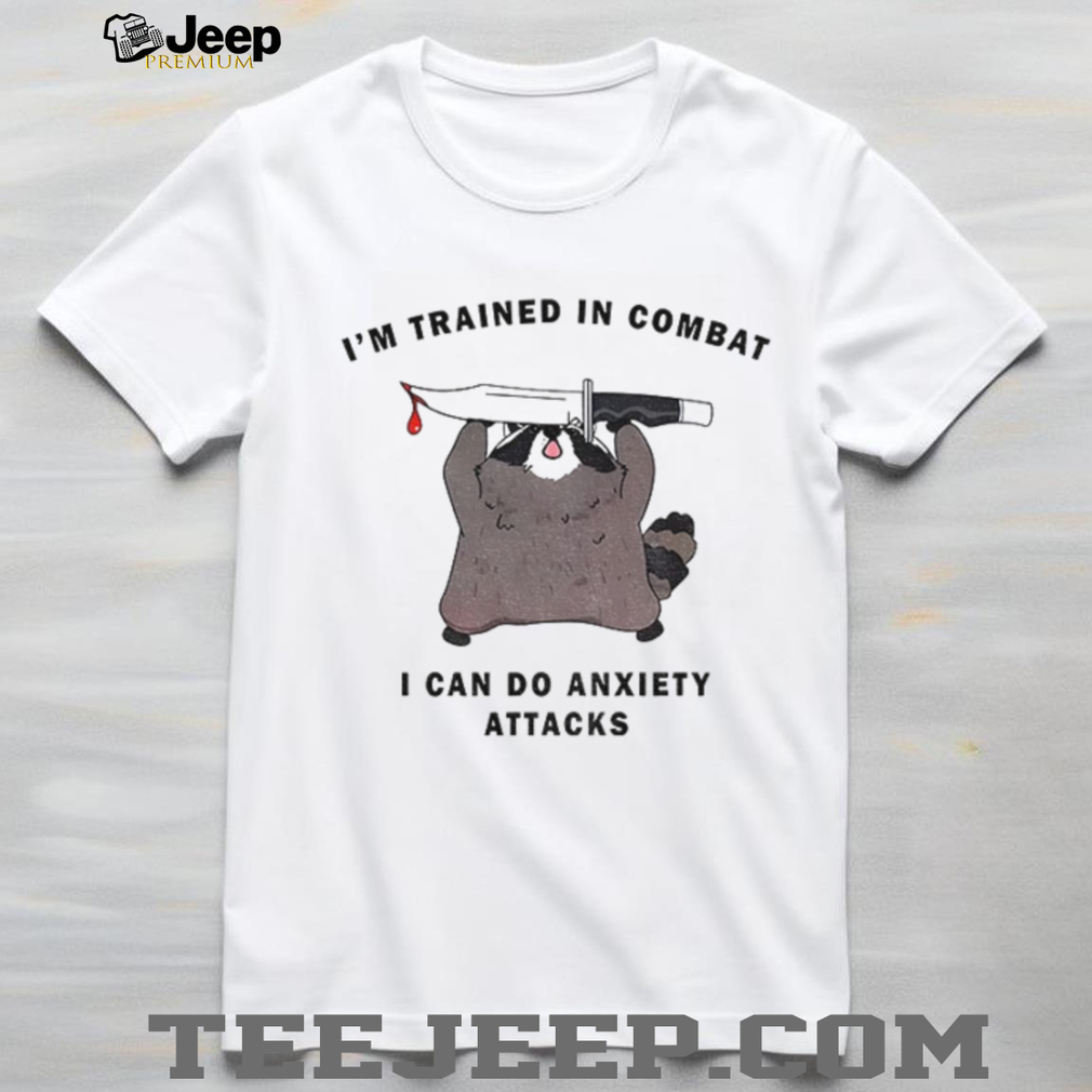 Embrace your inner strength (and humor) with this “Raccoon Coping with Anxiety” t-shirt! Featuring a raccoon in a surprisingly determined pose, this shirt playfully declares, “I’m trained in combat. I can do anxiety attacks.” It’s the perfect conversation starter for anyone who understands the unpredictable nature of anxiety with a bit of self-deprecating wit.