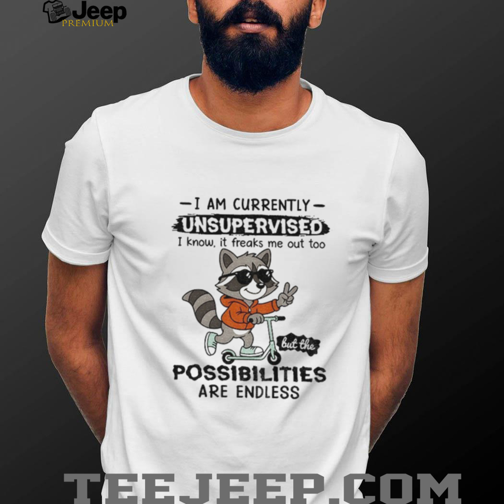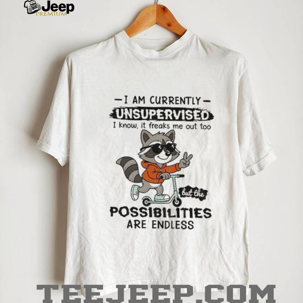 With each Raccoon I am currently unsupervised I know it freaks me out too possibilities are endless shirt, you are contributing to creating a green tree. To keep your shirt looking fresh, wash it inside out with cold water and tumble dry on low. Avoid direct ironing on the design to maintain its lasting appeal.