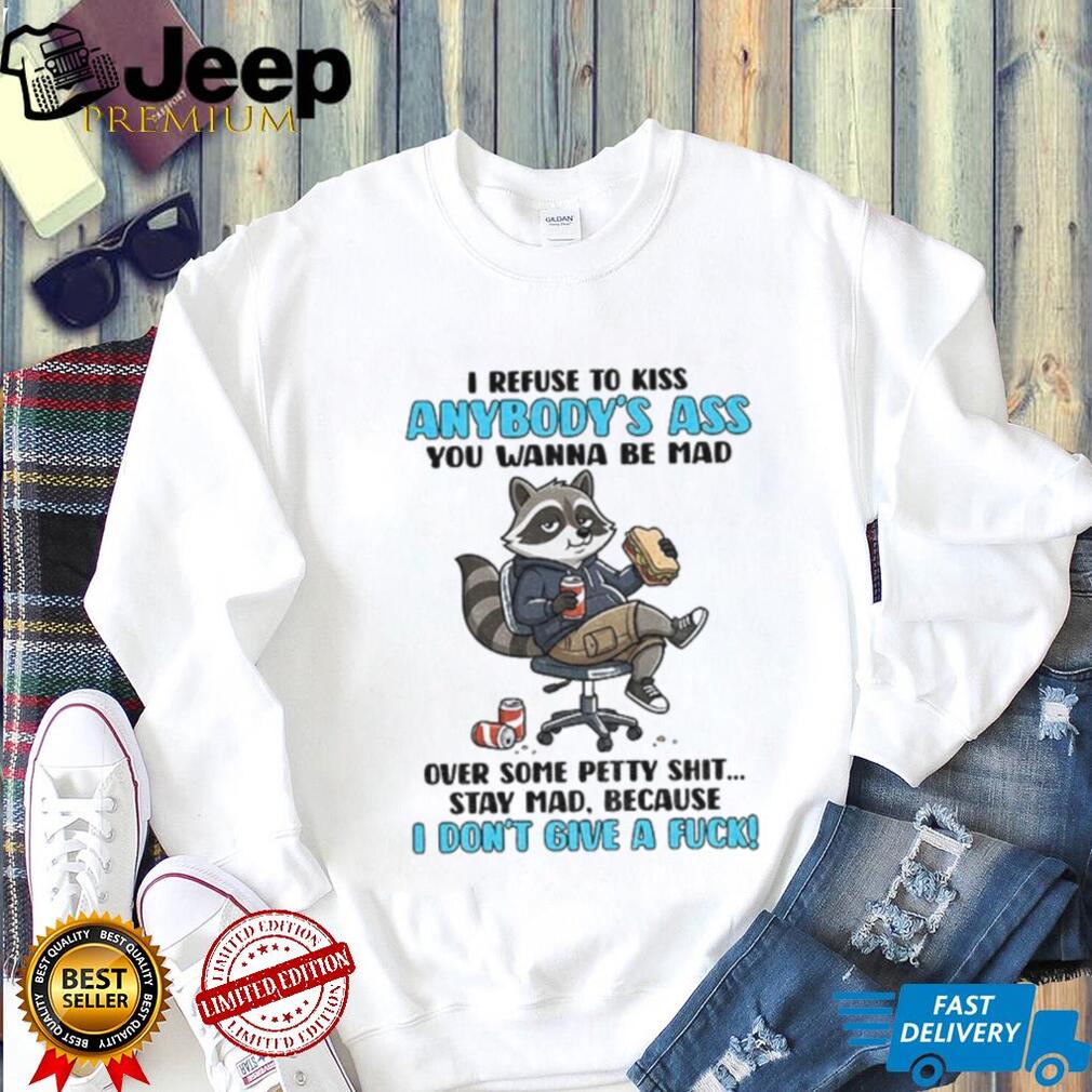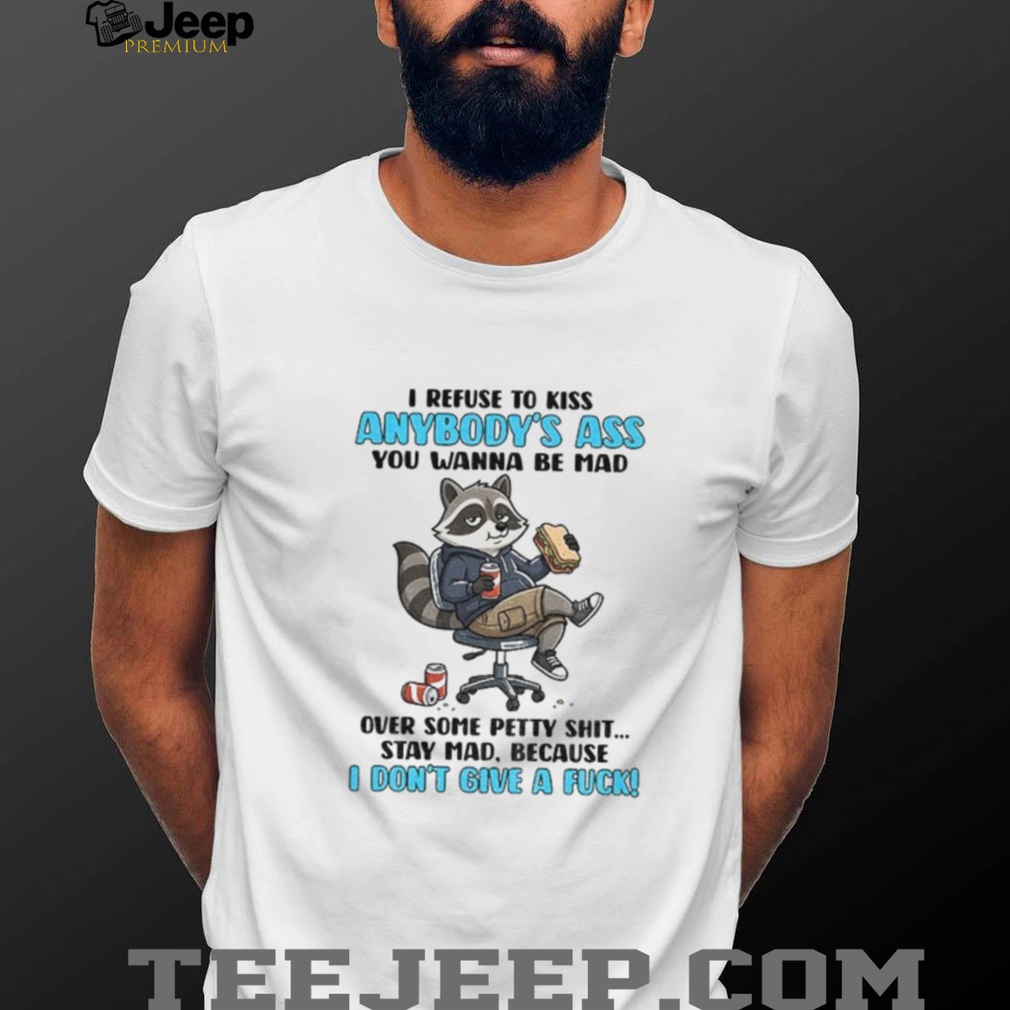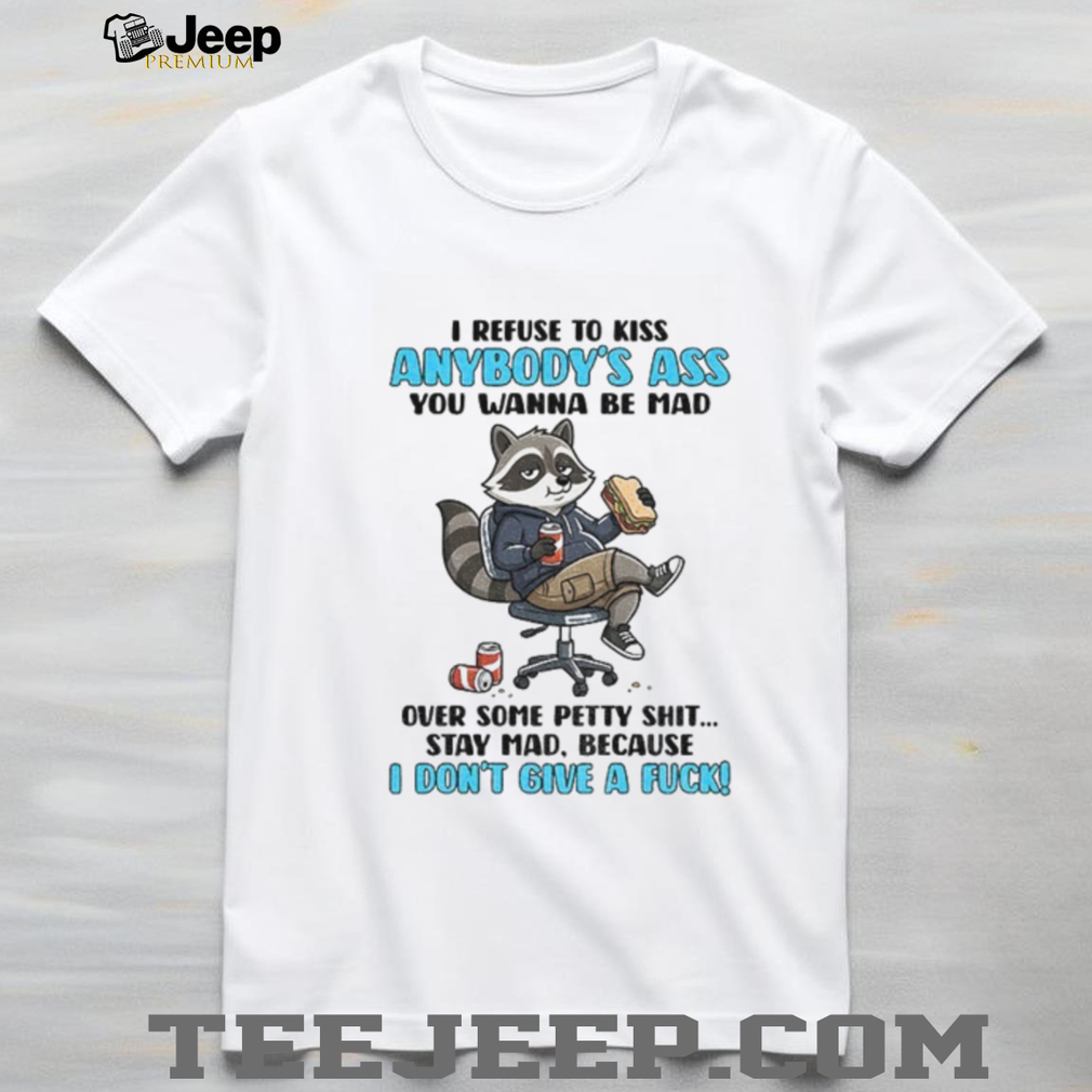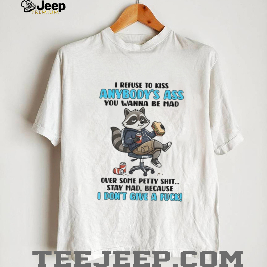 Ever reach that point where you just can’t pretend anymore? This “Raccoon I refuse to kiss anybody’s ass you wanna be mad over some patty shit stay mad because I don’t give a fuck shirt” is your spirit animal, perfectly capturing that unapologetic, tell-it-like-it-is attitude. It’s for anyone who values authenticity, doesn’t suffer fools gladly, and has a refreshingly blunt approach to life — all delivered with the charmingly defiant gaze of a raccoon.