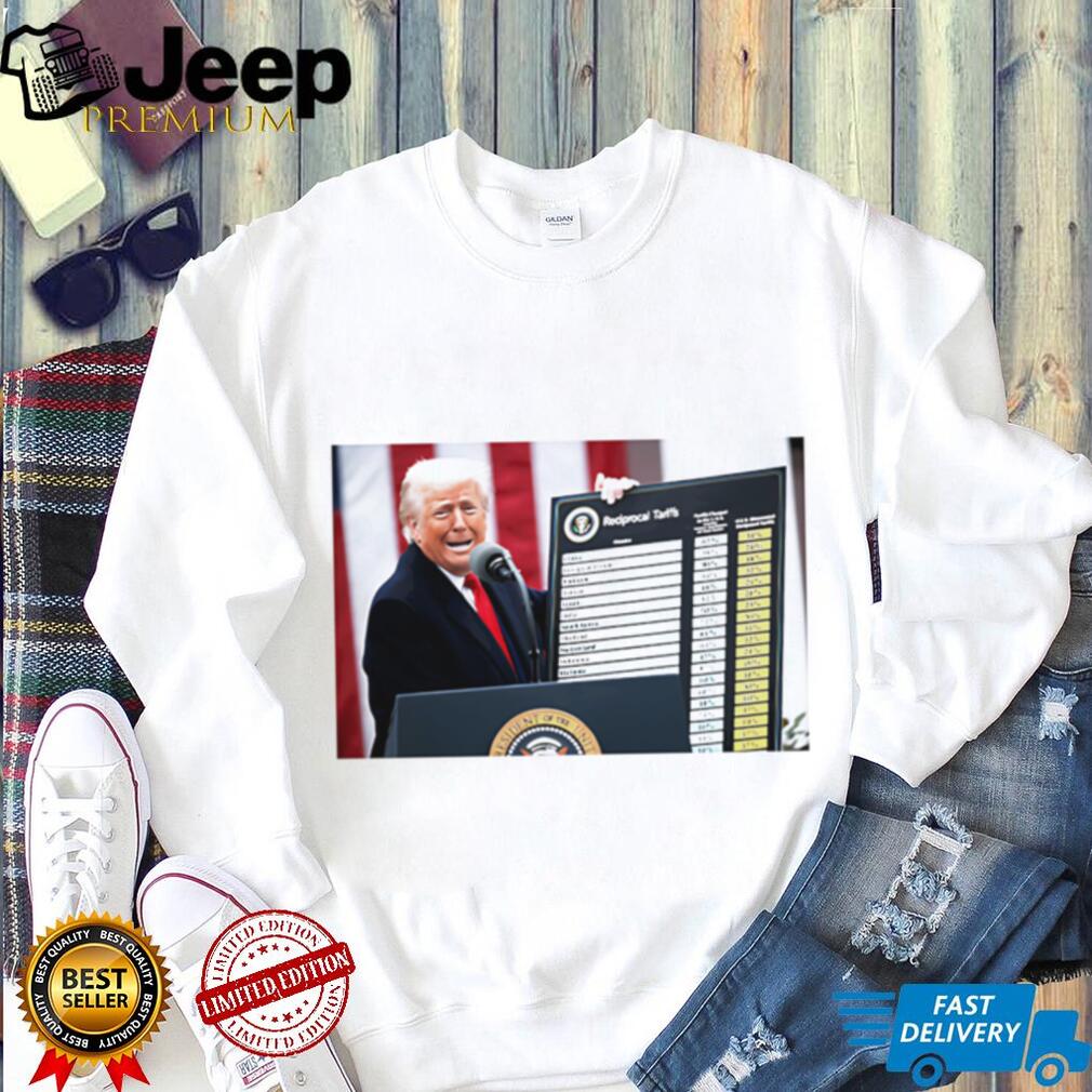 The “Reciprocal Tariffs 2025 Trump shirt” is a piece of apparel that references the concept of “reciprocal tariffs” and associates them with the Trump administration. This shirt aims to convey a specific political viewpoint, likely expressing support for or opposition to the use of reciprocal tariffs as a trade policy. It serves as a form of political expression, allowing individuals to publicly display their stance on this particular issue. The design prominently features the phrase “Reciprocal Tariffs 2025” and may include imagery associated with Donald Trump or his administration.