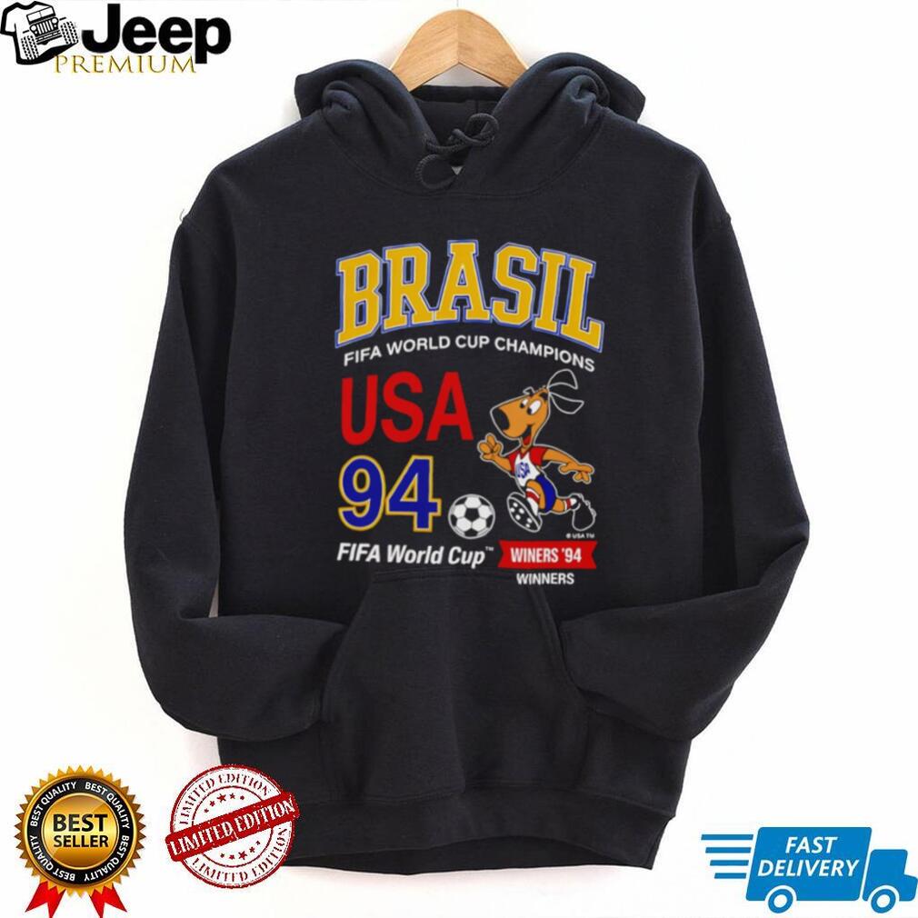 Relive the magic of Brazil’s 1994 FIFA World Cup triumph with this retro-style tee. Featuring classic mascot artwork and vintage design, it’s a nostalgic gem for football history lovers.