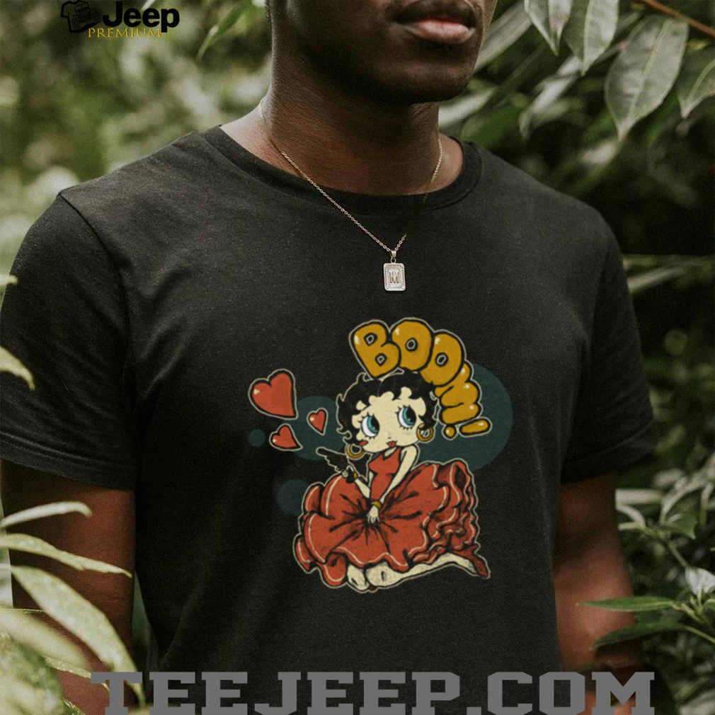 Retro Pin Up Girl “BOOM” Heart & Pistol Women’s T Shirt, Treat yourself or make a great gift for your loved ones