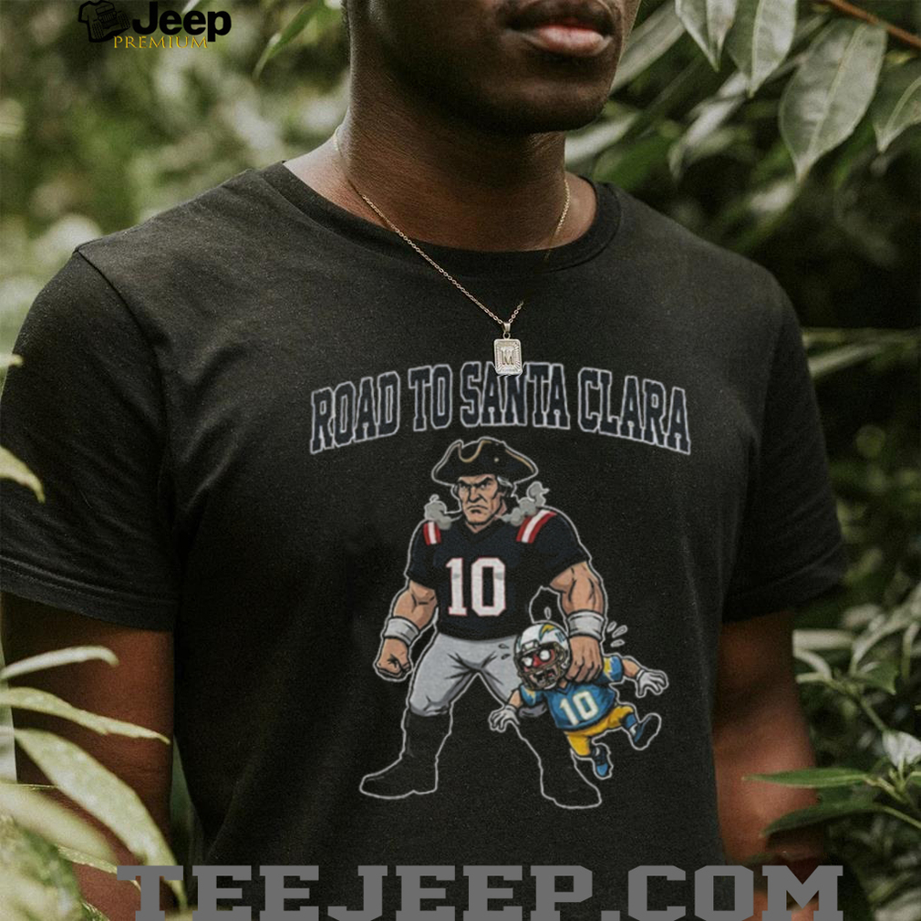 Road To Santa Clara Drake Maye holding Justin Herbert New England Patriots Football cartoon shirt, Treat yourself or make a great gift for your loved ones