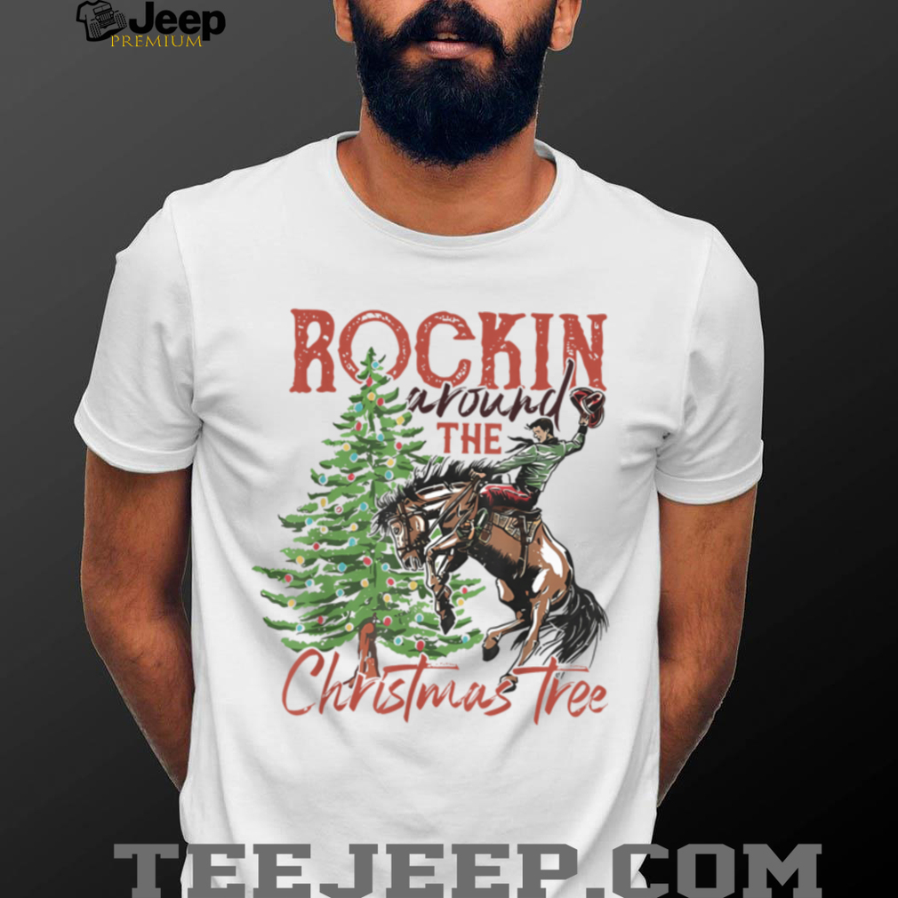 Who Rocks This Best Rocking Around The Christmas Tree Santa Rock and Roll Guitar T Shirt