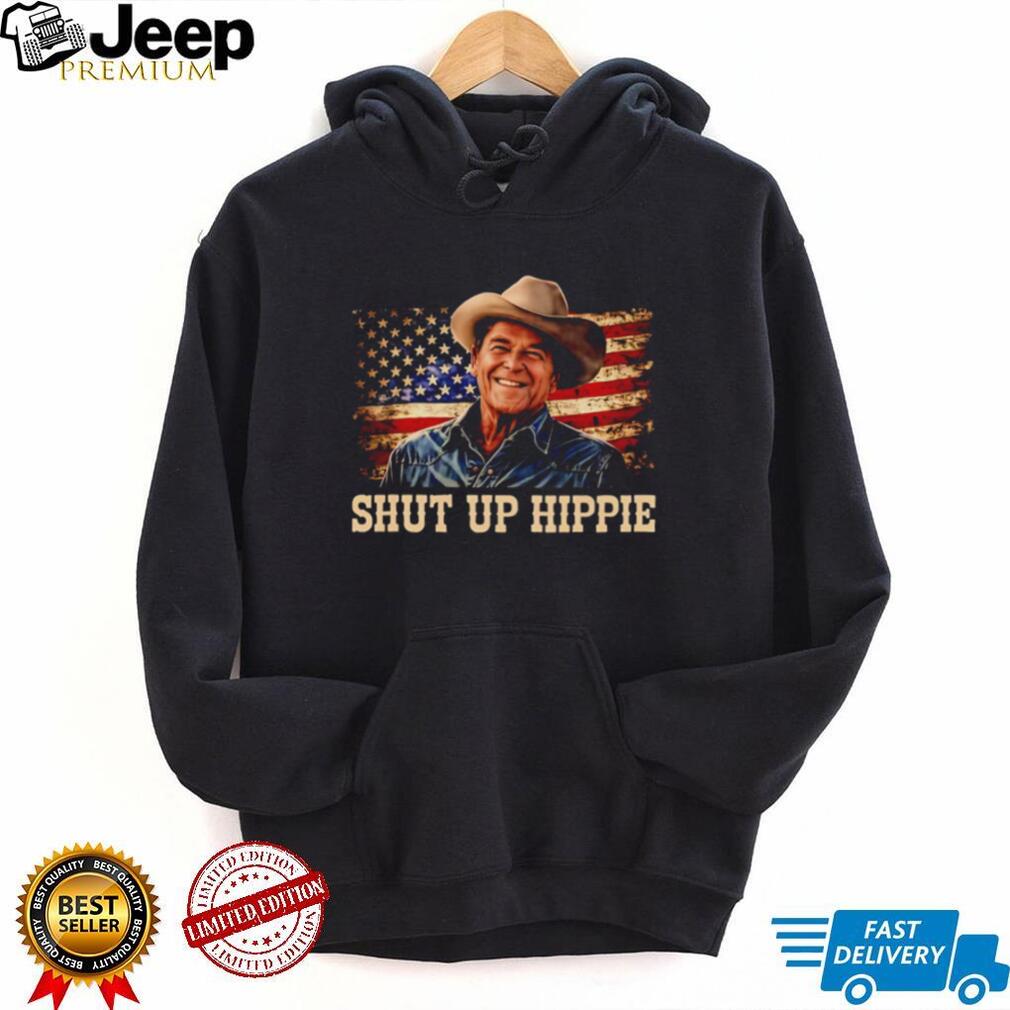 👕 About Ronald Reagan Shut Up Hippie American Flag Cowboy T Shirt