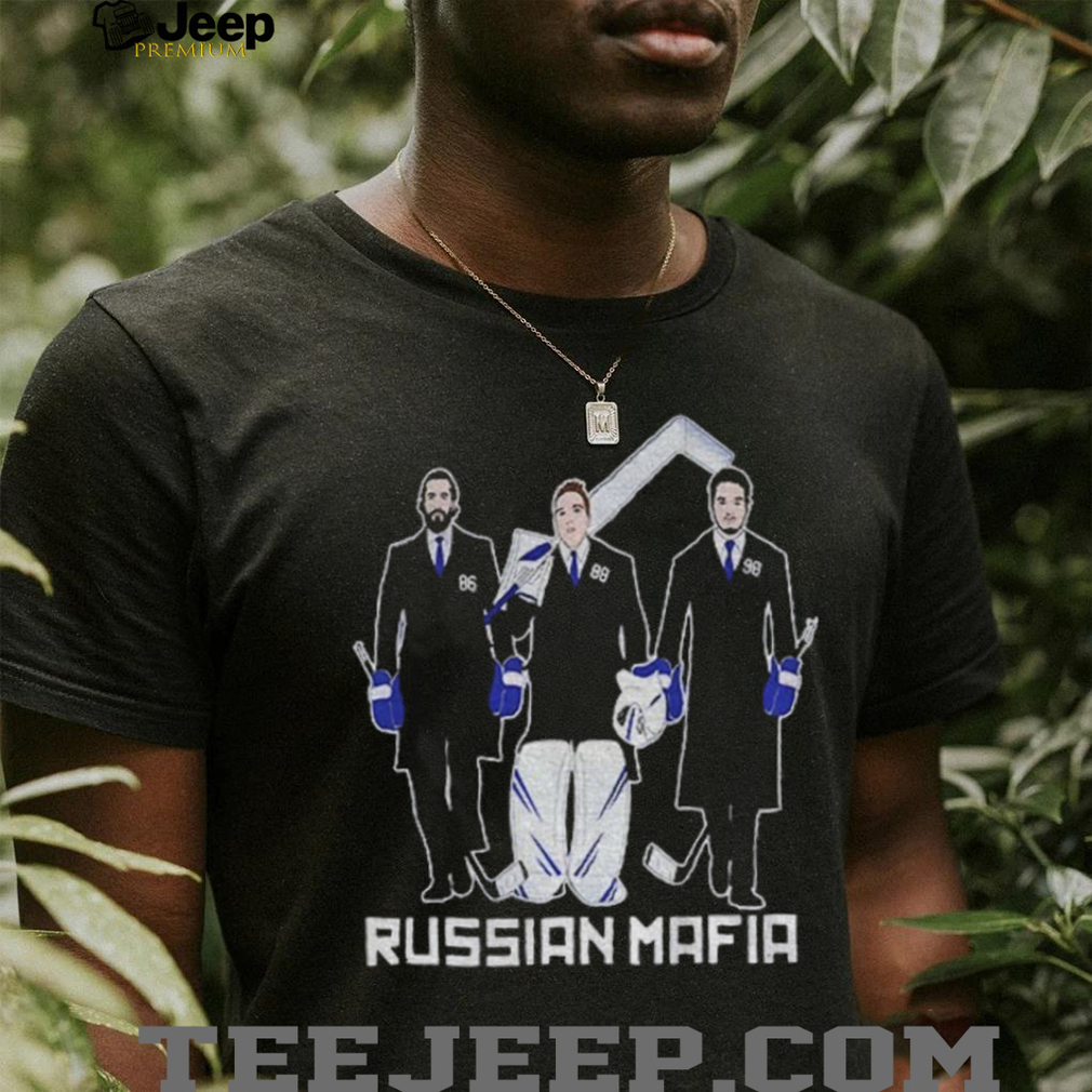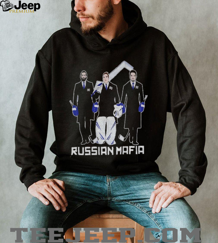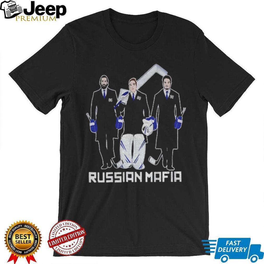 This Russian Mafia Nikita Kucherov Andrei Vasilevskiy Mikhail Sergachev Tampa Bay Lightning shirt is a bold statement of fandom. It highlights the core Russian players that make the Lightning shine. Soft and comfortable, this shirt is perfect for game days or casual wear.