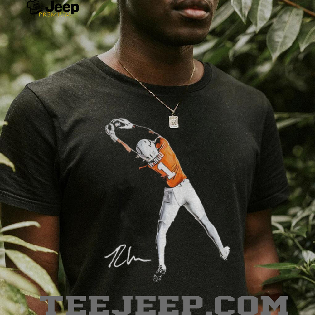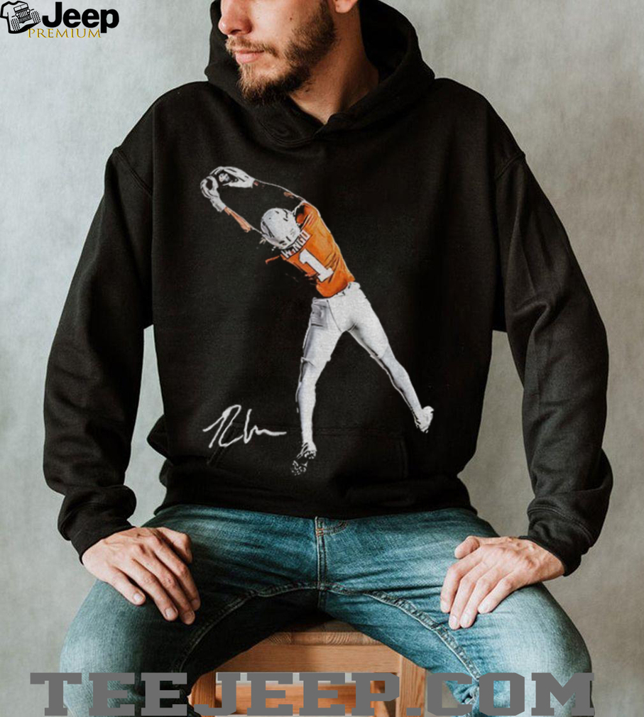 This Ryan Wingo possing Texas Longhorns Football signature shirt is a symbol of your support for the team and its rising star. It’s for the fan who believes in Wingo’s talent and the Longhorns’ potential. Made from a comfortable and durable cotton blend, this shirt is perfect for wearing to games, tailgates, or showing off your Longhorns pride around town. The design features Ryan Wingo and his signature. Available in a range of sizes.