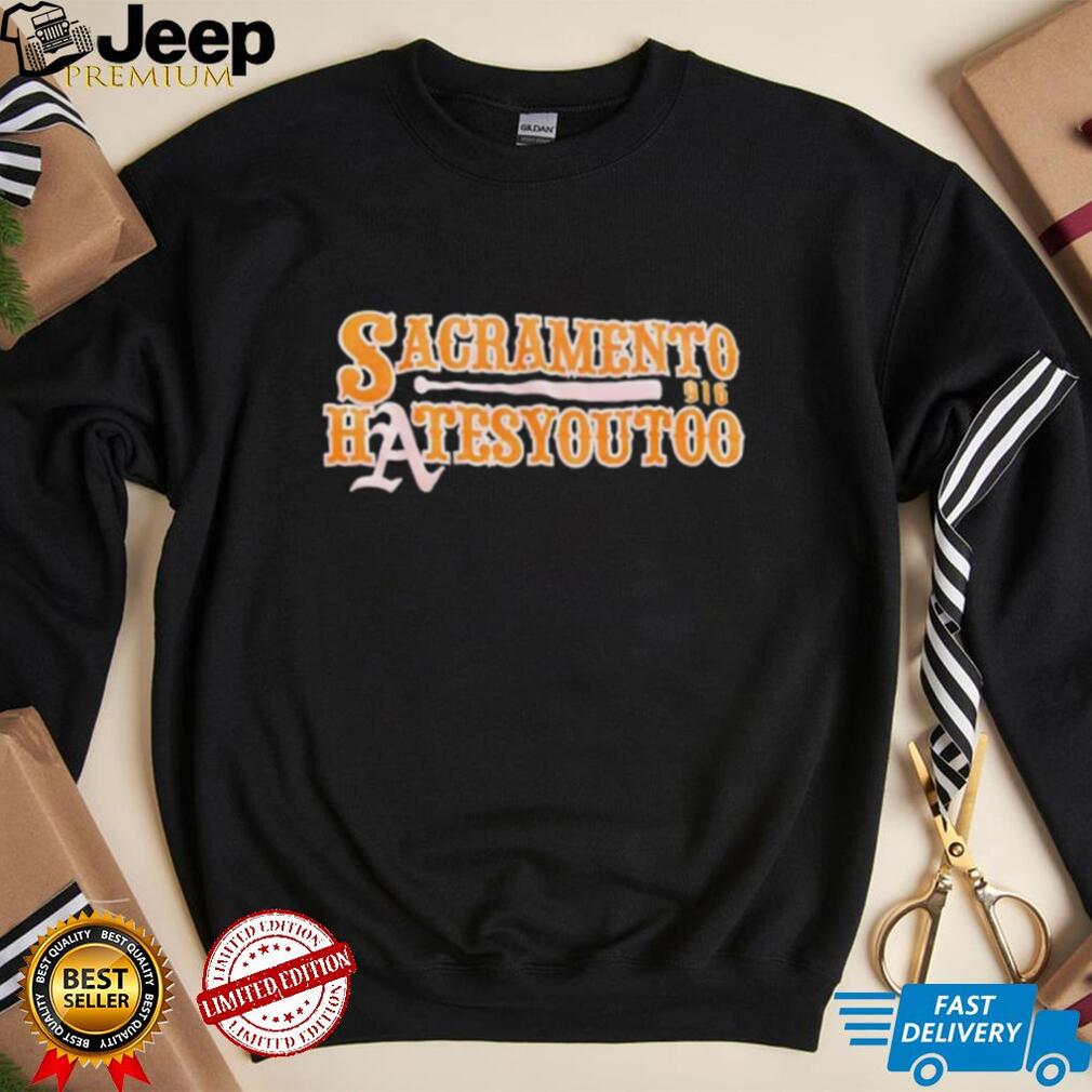 The “Sacramento Hates You Too Baseball Unisex T-Shirt” is a piece of apparel that boldly expresses a strong sense of rivalry within a baseball context, specifically related to Sacramento. This shirt serves as a declaration of competitive spirit, often aimed at a rival team or city, and celebrates the passionate nature of sports fandom. It’s designed to resonate with Sacramento baseball fans, those who enjoy the intensity of rivalries, and individuals who appreciate bold and provocative sports apparel. The design would prominently feature the phrase “Sacramento Hates You Too,” often in a bold and aggressive font, alongside baseball-related graphics or imagery associated with Sacramento.