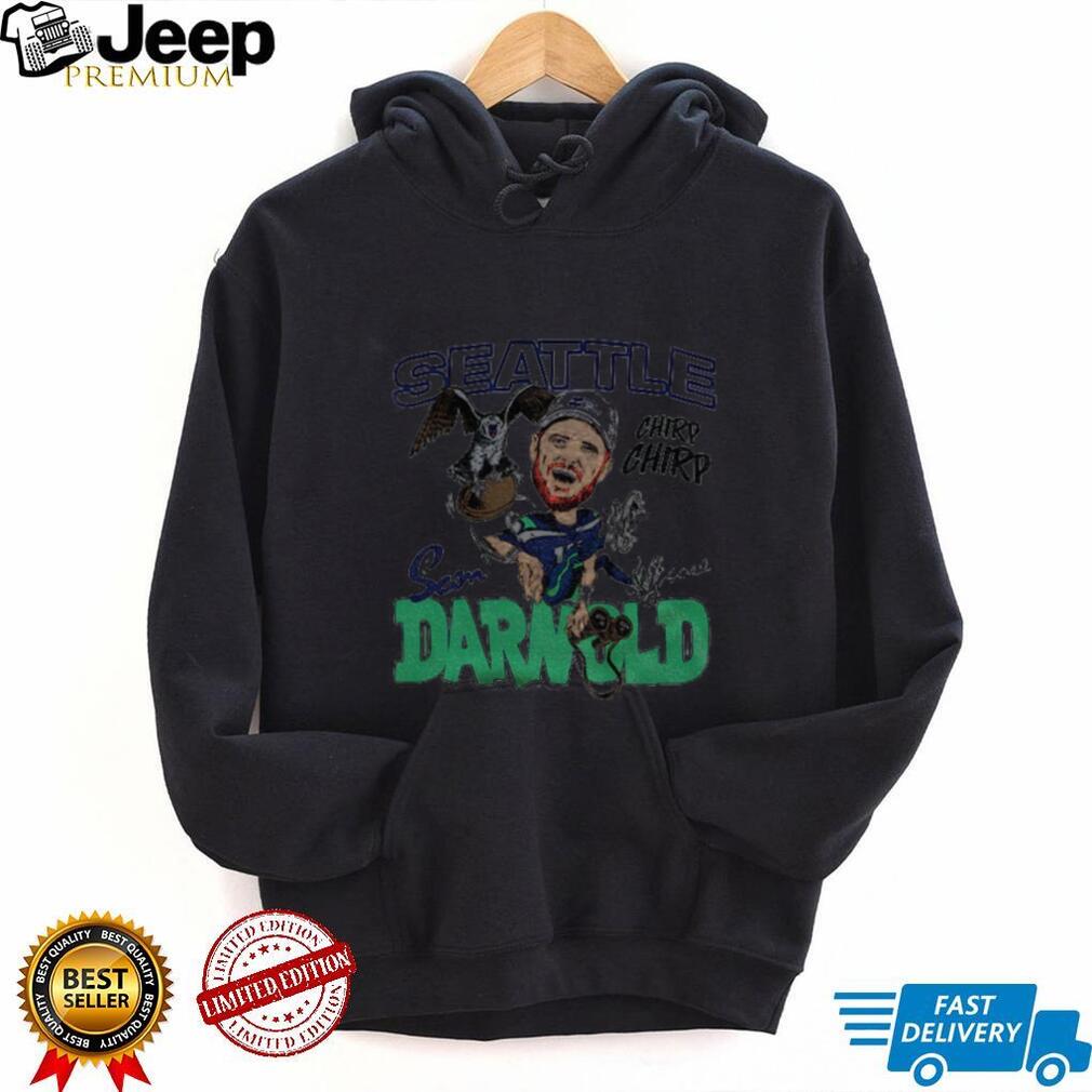 Get ready to show your support for the Seattle Seahawks’ newest quarterback with this one-of-a-kind Sam Darnold caricature shirt! This isn’t your average fan gear; it’s a fun, quirky way to represent your team and your favorite player, complete with a “Chirp Chirp” signature detail. Perfect for game days, tailgates, or just kicking back and watching football.