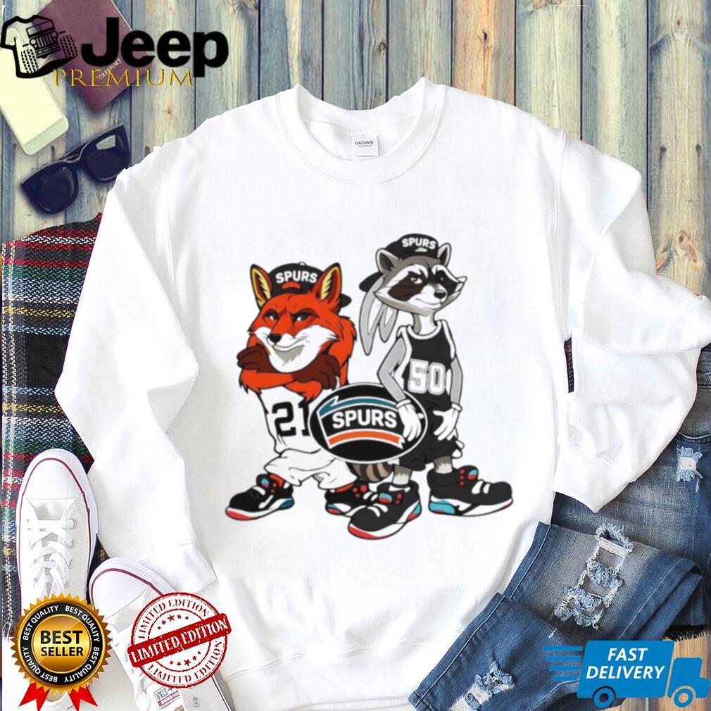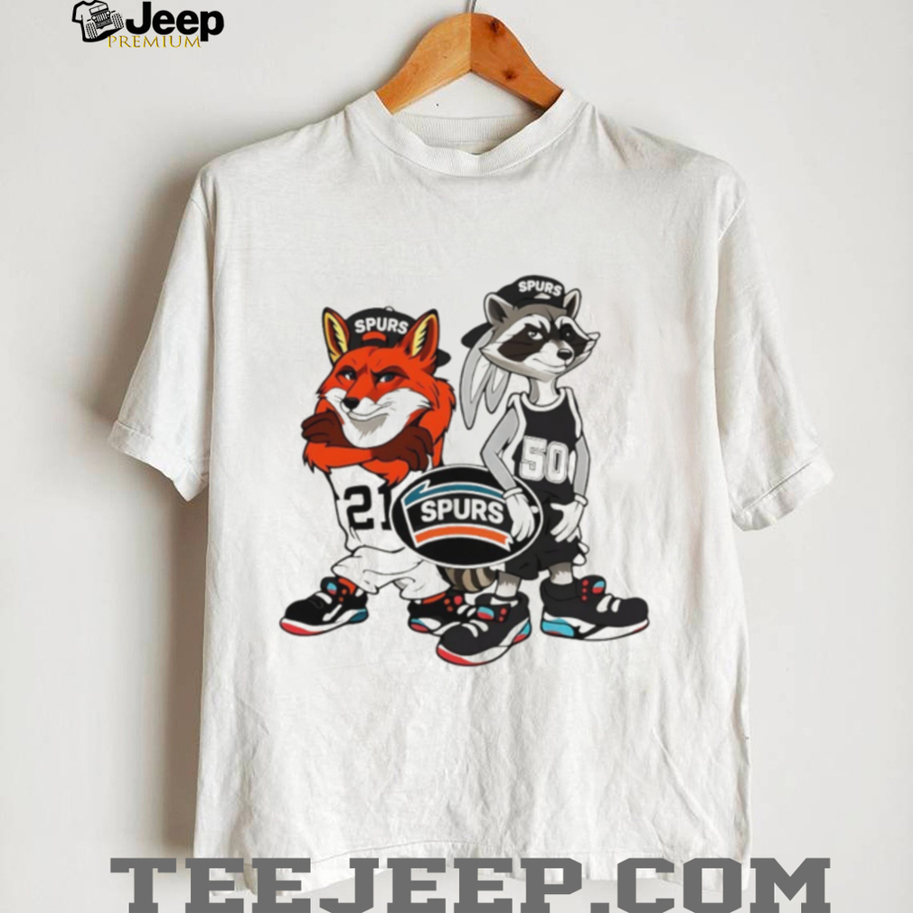 (San Antonio Spurs Cartoon Fox and Raccoon Basketball T Shirt)Apr 02