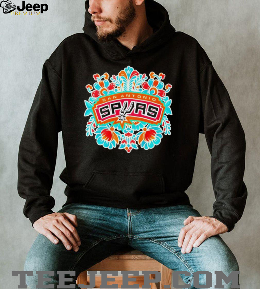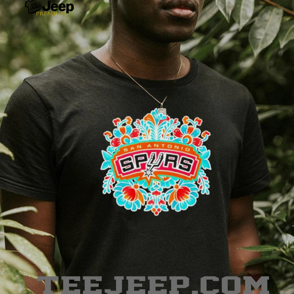 Beauty meets basketball in this intricate floral mandala Spurs tee. A heritage design blending the art traditions of San Antonio’s diverse culture with silver and black Spurs pride.
