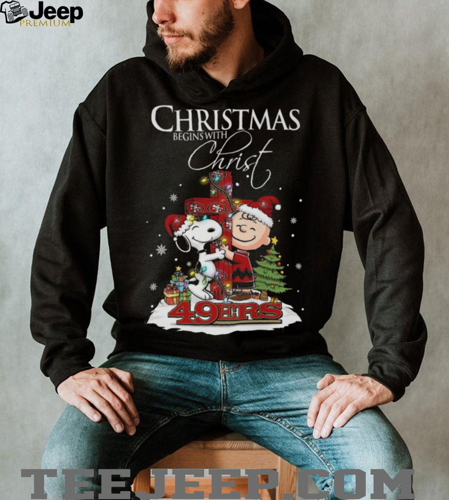 Get ready to celebrate the holidays and cheer on your team with a smile! If you’re a fan who loves both classic cartoons and gridiron action, the ‘San Francisco 49ers Snoopy Begins With Christ And Friends Peanuts Christmas Shirt’ is the perfect festive addition to your wardrobe. This isn’t just another football tee; it’s a joyful mashup that lets you showcase your 49ers pride and Christmas spirit in a uniquely charming way, ideal for anyone looking to add some playful style to their holiday season.