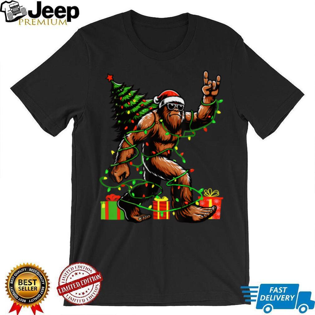 Why settle for a boring Christmas shirt when you can have Santa riding Bigfoot with a Christmas tree and Xmas lights? This Funny Sasquatch T-Shirt is the ultimate conversation starter for your holiday gatherings! It’s quirky, it’s festive, and it’s guaranteed to make people laugh. Perfect for Bigfoot believers and Christmas lovers alike!