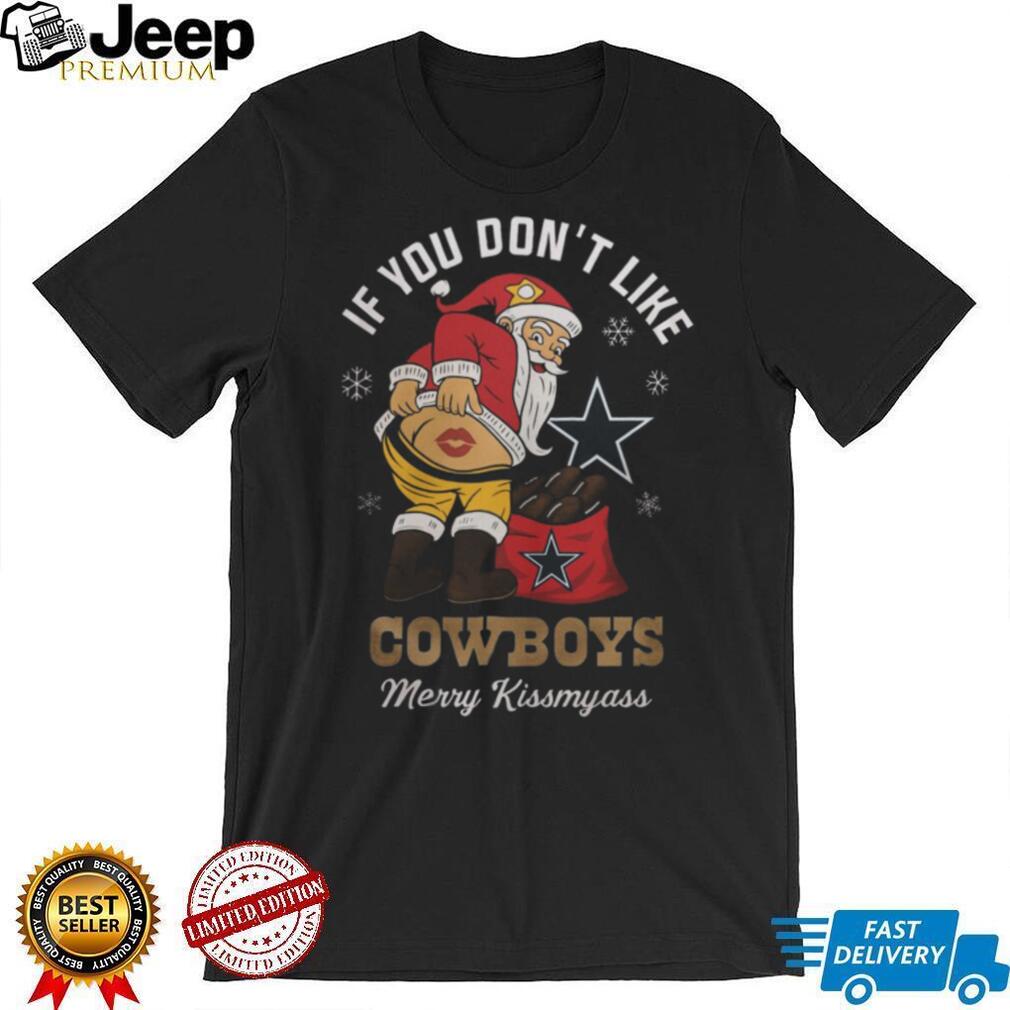 This Santa Claus If You Don’t Like Dallas Cowboys Merry Kissmyass T Shirt is for the passionate football fan who loves to stir up a little friendly competition during the holidays. It’s an ideal gift for friends and family who root for rival teams or anyone with a good sense of humor about football. Wear it to your holiday gatherings, sports bar outings, or while watching the game at home to spark conversations and show your true colors (or lack thereof, when it comes to the Cowboys).