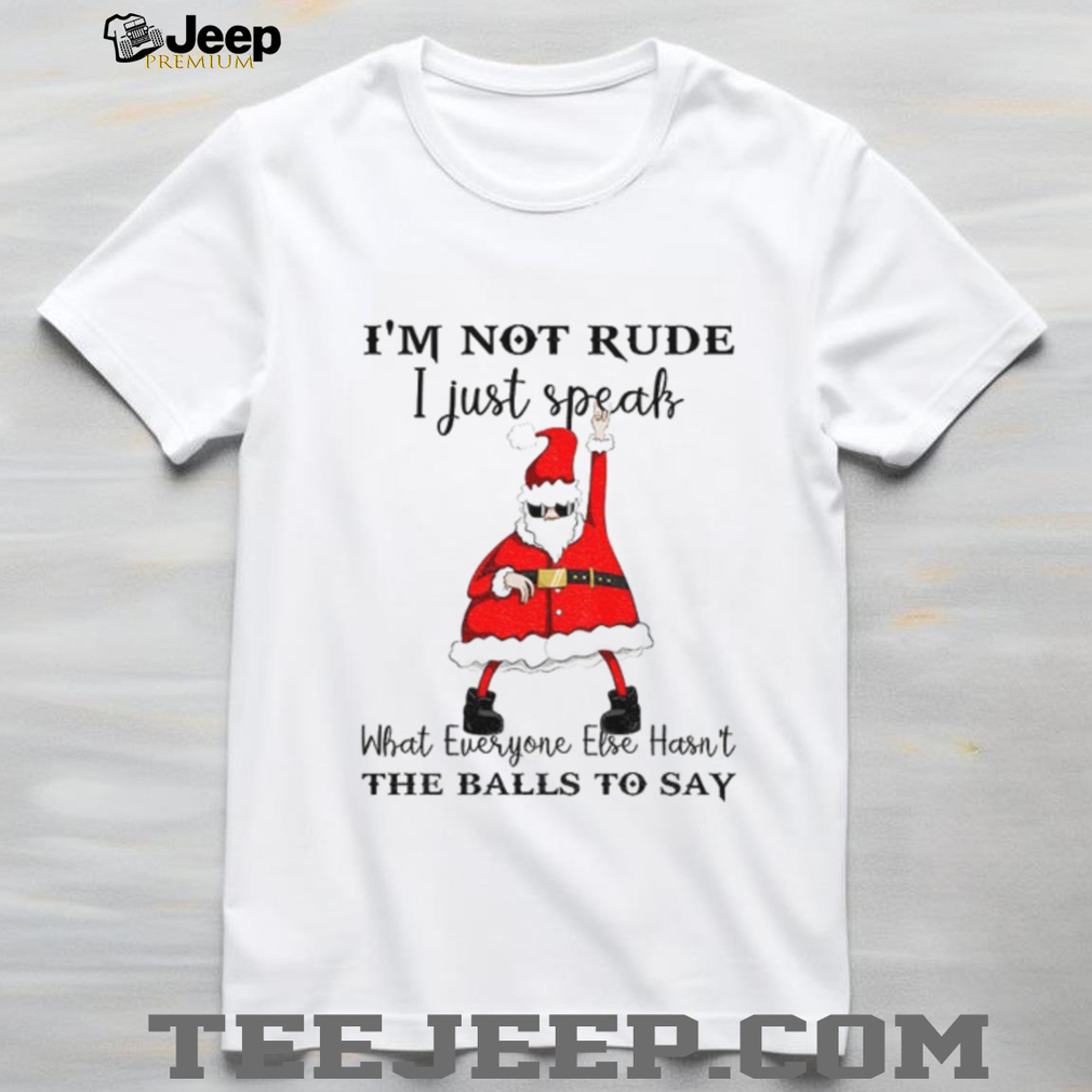 This “Santa Claus I’m not rude I just speak what everyone else hasn’t the balls to say Christmas shirt” is more than just a festive garment; it’s a conversation starter. Wear it to Christmas parties, family dinners, or while doing your holiday shopping. It’s a great way to show off your unique sense of humor and connect with like-minded individuals. Made from a soft and comfortable material, this shirt will keep you feeling good all day long. It’s a classic fit that’s flattering for everyone, and is available in various sizes.