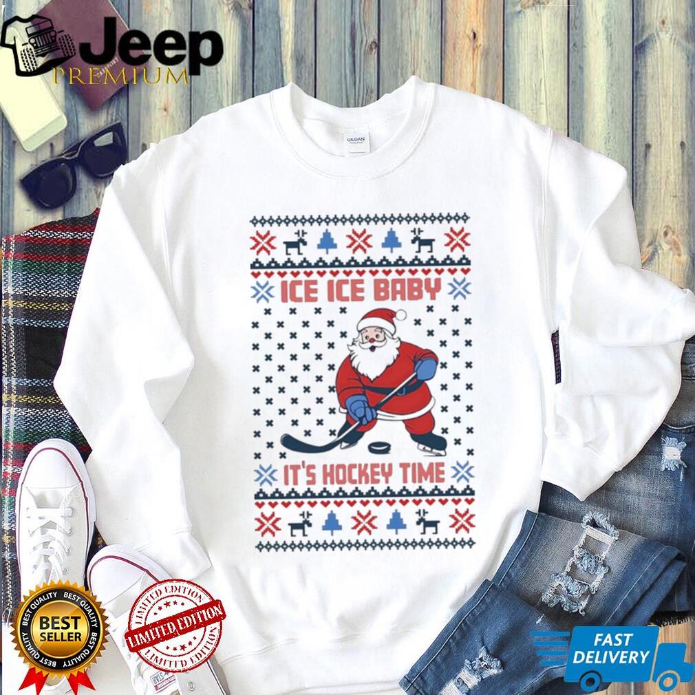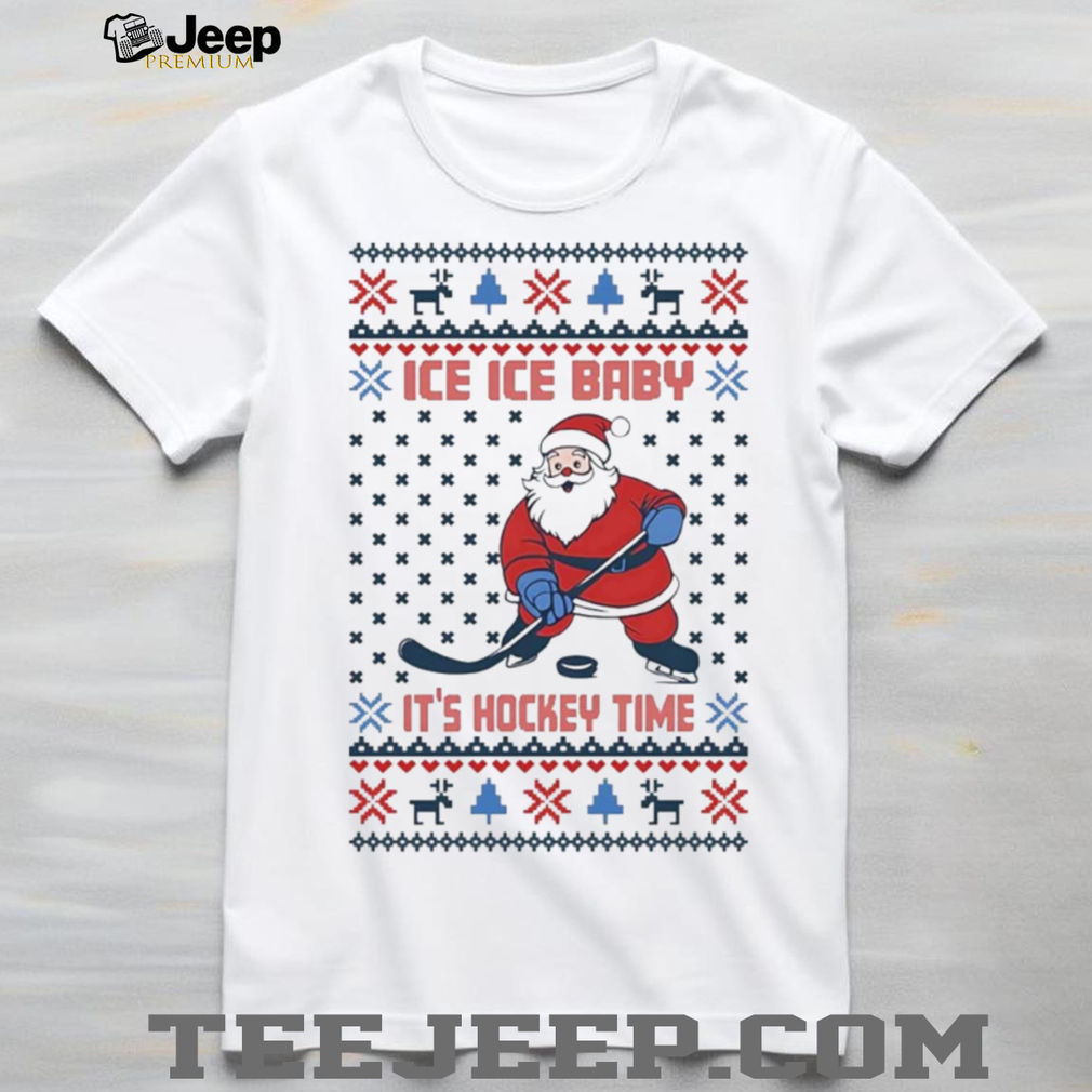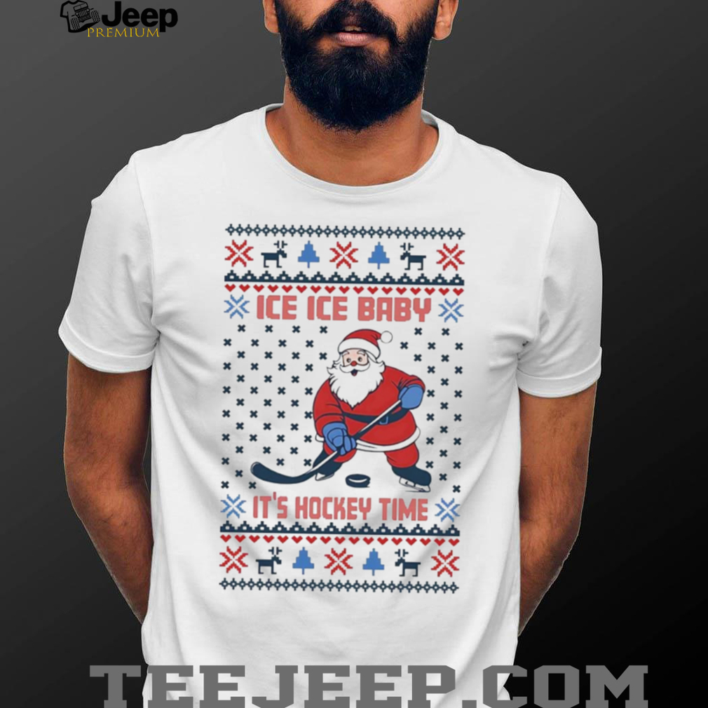 Get ready to sleigh the holidays with this hilarious “Santa Ice Ice Baby” hockey Christmas shirt! It’s the perfect mashup of festive cheer and ice rink thrills. This ugly Christmas shirt is guaranteed to be a hit at your next holiday party or hockey game. Prepare for some serious laughs and high-fives!