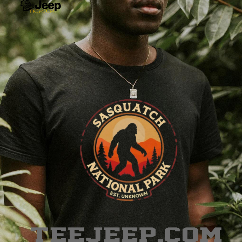 (Sasquatch National Park Est Unknown Retro Sunset Bigfoot T Shirt)