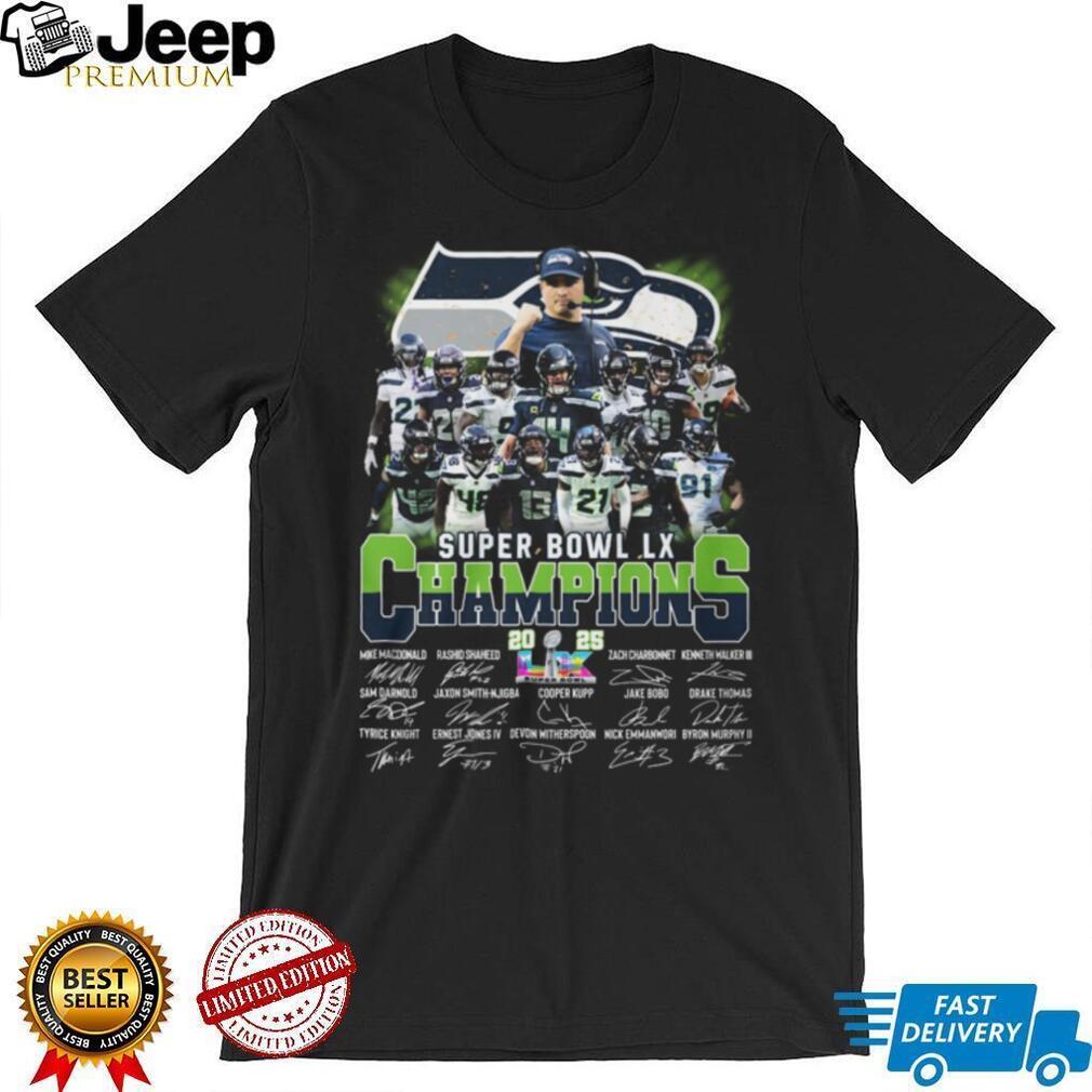 Seahawks Super Bowl LX Champions Coach Mike Macdonald & Players Signatures Shirt, Treat yourself or make a great gift for your loved ones