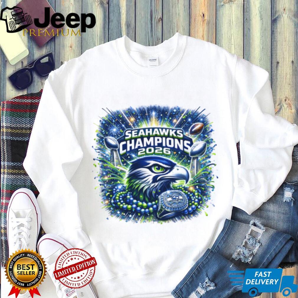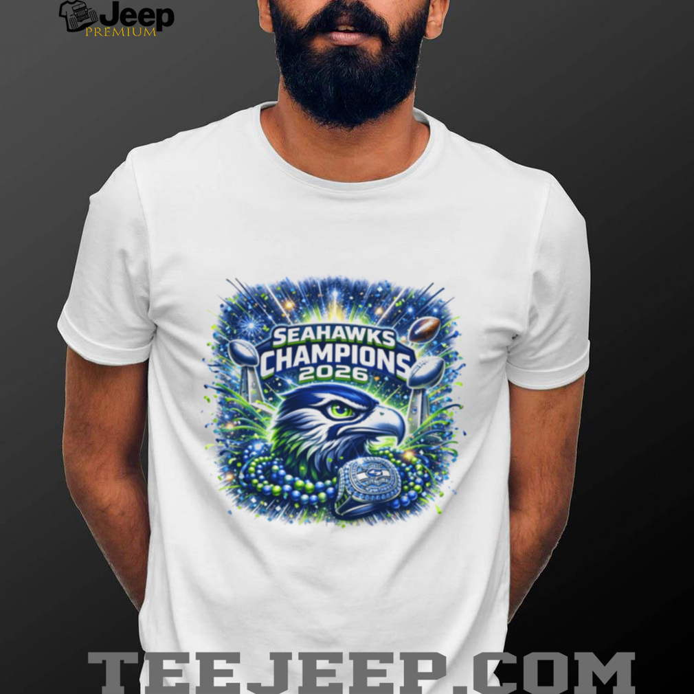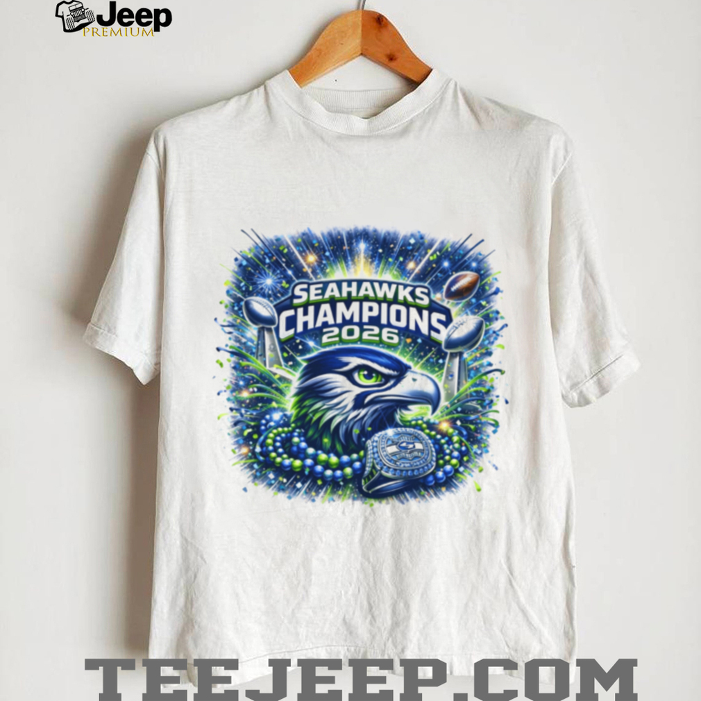 (Seattle Football 2026 World Champions Celebration Graphic Tee)Super Bowl LX is officially set for tomorrow, February 8, at Levi’s Stadium, with the Seattle Seahawks (-4.5) holding steady as favorites over the New England Patriots. Betting trends show roughly 70% of spread bets favor Seattle, likely due to their top-ranked scoring defense and the “Golden Retriever Energy” of quarterback Sam Darnold, who has unified the locker room during their seven-game winning streak. On the other side, rookie Drake Maye and the Patriots are 14–3 and enter the game as one of the most surprising Seattle Football 2026 World Champions Celebration Graphic Tee in NFL history. Oddsmakers have set the over/under at 45.5, predicting a gritty, defensive battle that leans into the strengths of both coaching staffs.