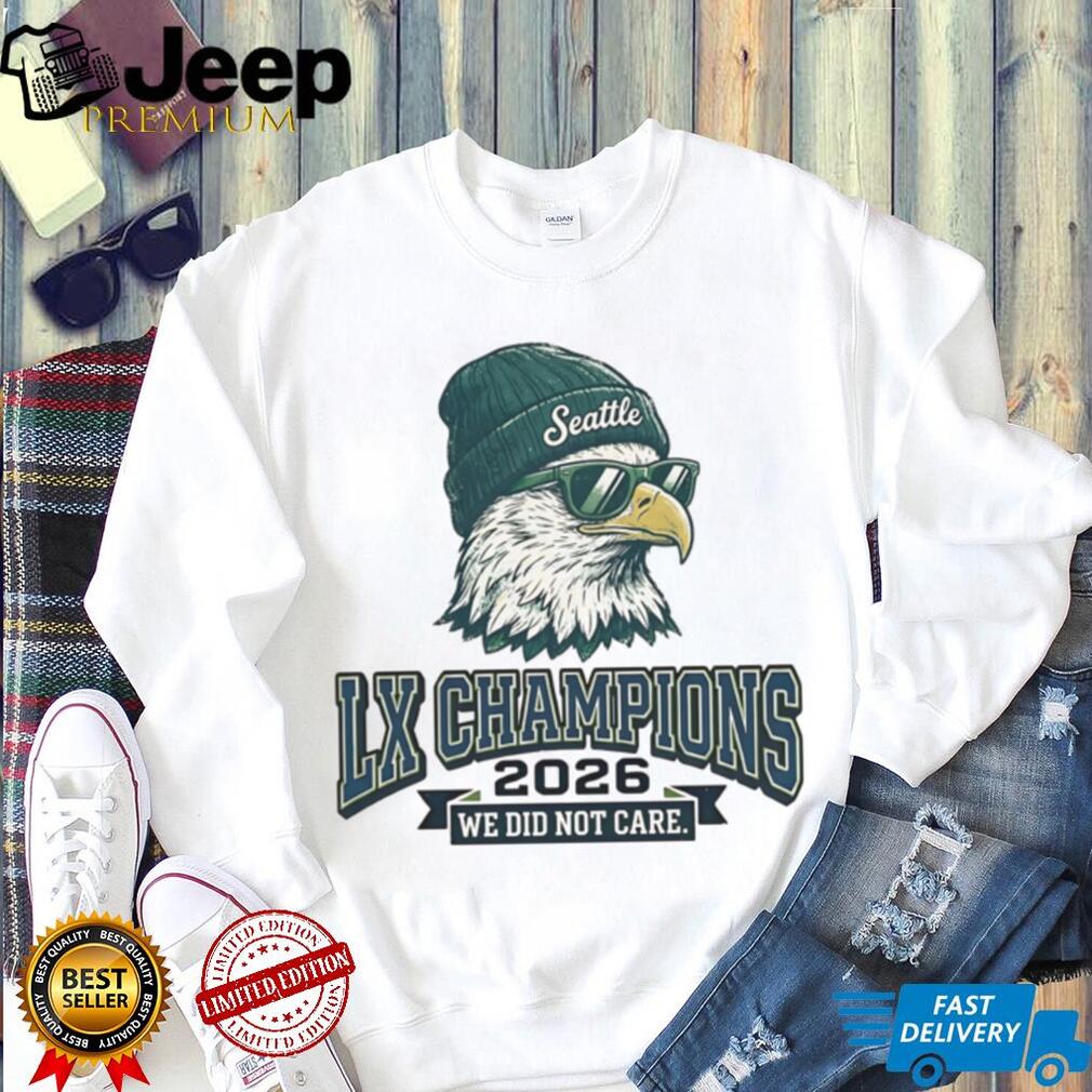 (Seattle LX Champions 2026 “We Did Not Care” Eagle Fan Tee)I Honestly Hate The Way The General Consensus Is Starting To Suggest That The Seahawks Will Win This Game Easily, Because That’s When Mistakes Happen. I Just Hope The Team Doesn’t Go Into This Game Underestimating New England Just Because They Have A Young Quarterback. It’s The Super Bowl—you Never Know What To Expect, And Any Given Sunday Can Turn Into A Nightmare If You Aren’t 100% Locked In. I’d Like To Think This Locker Room Doesn’t Give Two Fucks What The Seattle LX Champions 2026 “We Did Not Care” Eagle Fan Tee Is Saying, And If Anyone Even Hints At Being Overconfident, I Hope Mike Macdonald Just Brings Up The Pats Vs. Giants History To Humble Them. My Prediction Is A Close, Gritty Game That Ends 23-20 In Favor Of Seattle, But I Wouldn’t Be Surprised If The Defense Takes Over And Makes It A Much Larger Margin If They Get To Drake Maye Early.