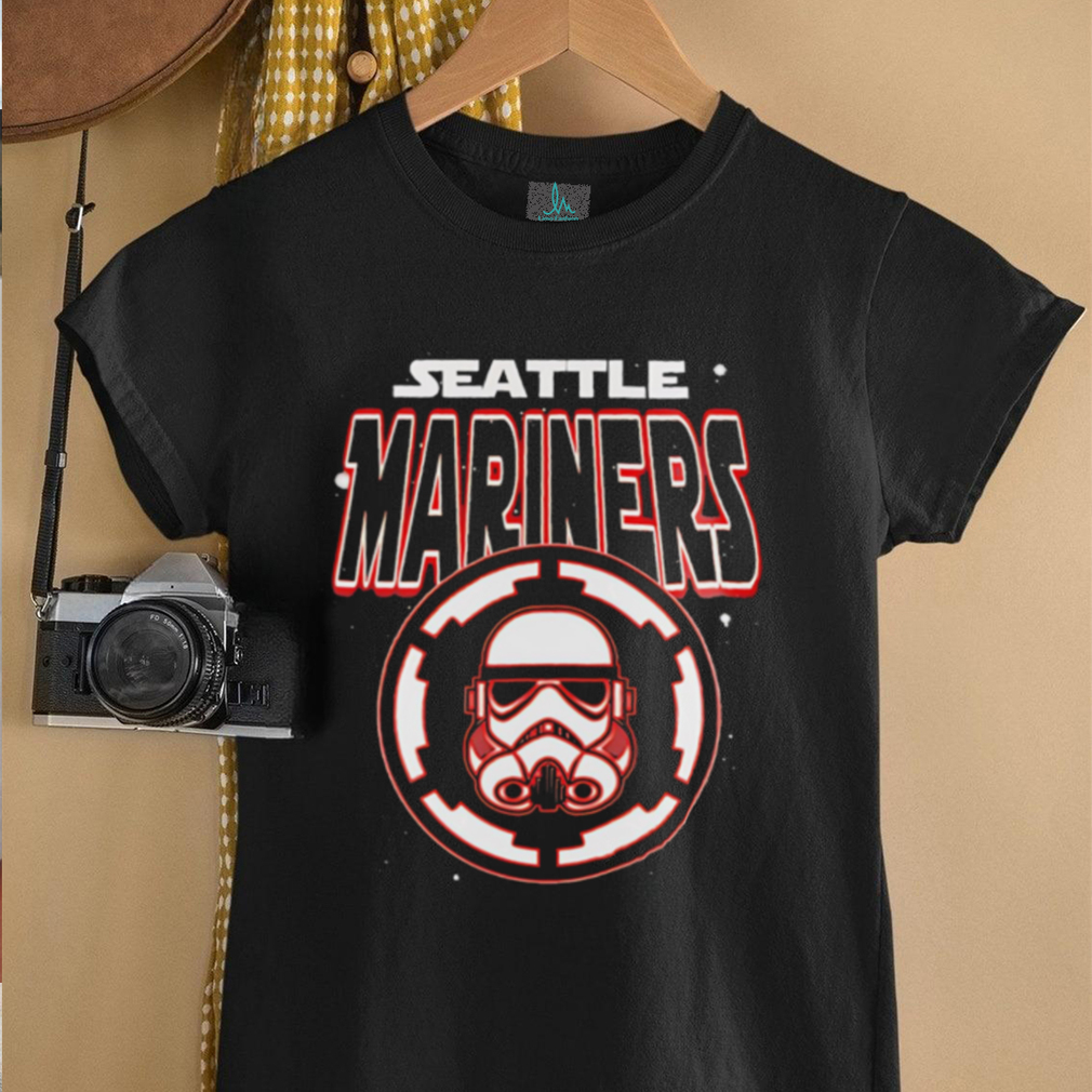 The design of the shirt would creatively combine elements of the Seattle Mariners and Star Wars. This could involve incorporating the Mariners’ team colors (navy blue, northwest green, silver, and white) and logos with recognizable Star Wars imagery such as characters like Darth Vader, Luke Skywalker, or Grogu, iconic vehicles like the Millennium Falcon or X-wings, or symbols like the Rebel Alliance or Galactic Empire logos. The text would likely include “Seattle Mariners,” “Star Wars Night 2025,” and possibly a clever tagline that merges baseball and Star Wars terminology. For example, it might say “May the Force Be With Our Mariners!” or feature a Mariner’s logo reimagined with a Star Wars twist. According to the Seattle Mariners’ official website, their Star Wars Night in 2025 is scheduled for Monday, May 12th against the New York Yankees, and includes a limited-edition “Rebel Alliance” Button Up Shirt as a giveaway for those who purchase through a special ticket offer. While the specific t-shirt design for general sale or other promotions isn’t detailed there, it would likely follow a similar theme.