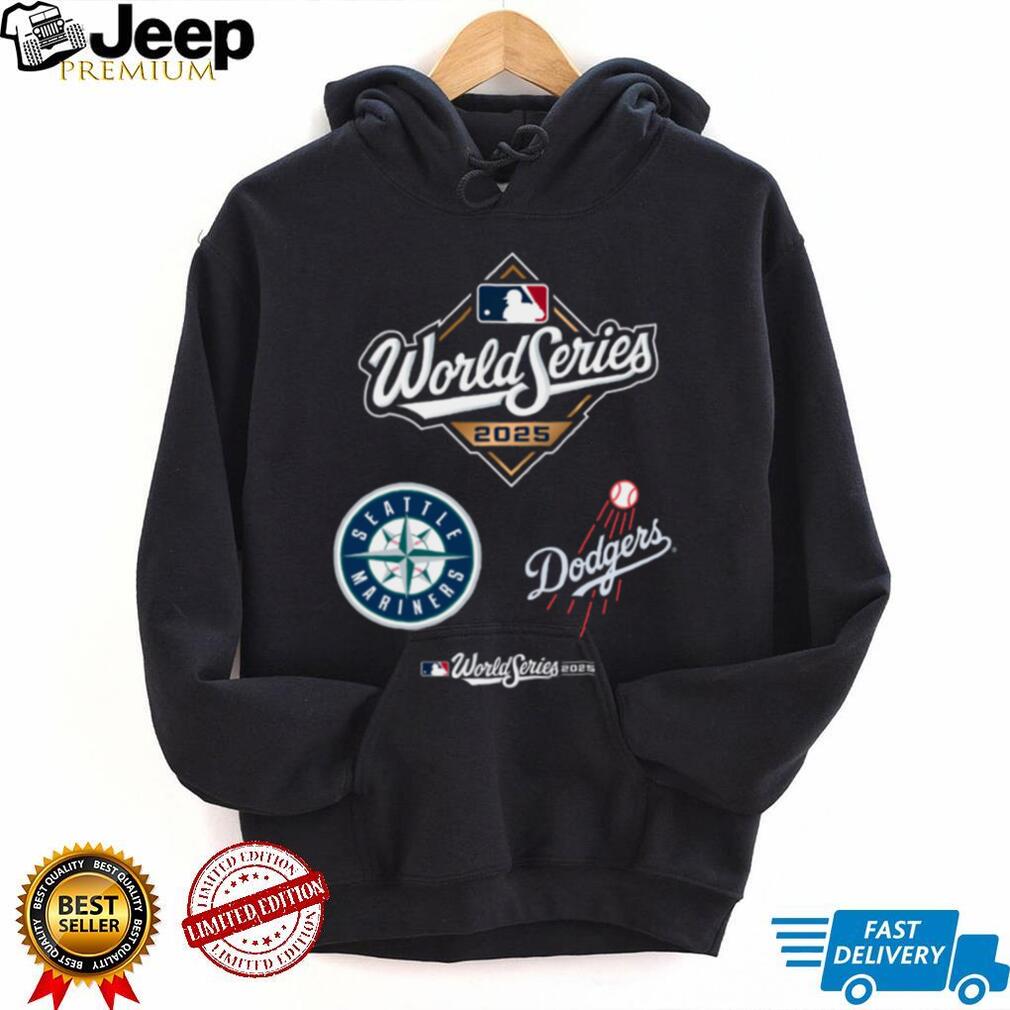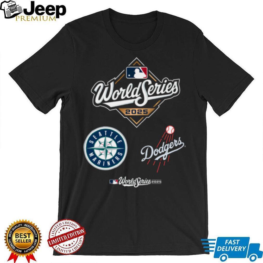 This Seattle Mariners vs Los Angeles Dodgers MLB 2025 World Series Champions Matchup T Shirt is crafted for comfort and enduring team pride. Made from a soft, breathable cotton blend, it’s perfect whether you’re at the ballpark, hosting a watch party, or just out and about. The vibrant graphic, featuring both team logos, celebrates the thrilling prospect of this epic 2025 MLB World Series clash. Available in a range of sizes to ensure a great fit for every fan, this baseball fan apparel lets you celebrate the hypothetical championship battle. It’s a bold way to cheer on your favorite teams and commemorate a potential historic moment in baseball.