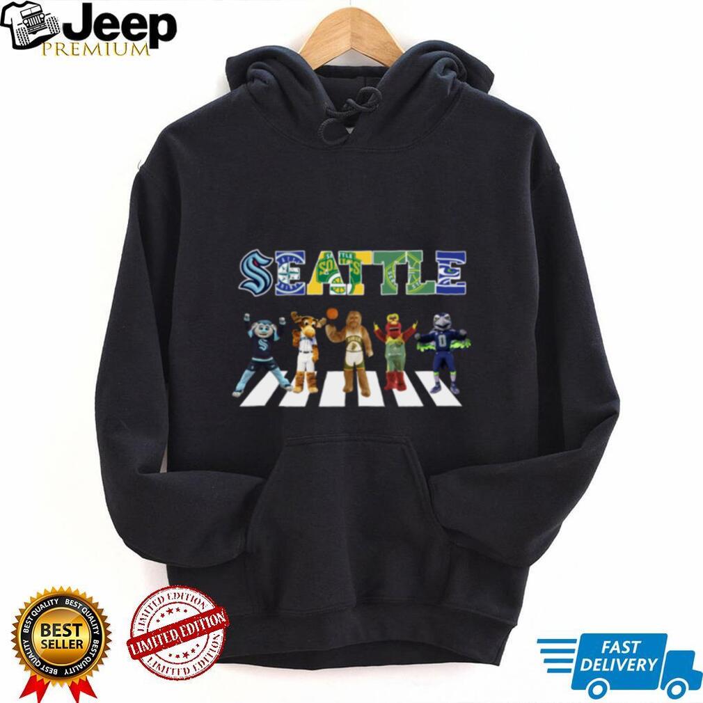 This “Seattle Merch Seattle 5 Mascot Sports Team Abbey Road Hoodie” isn’t just another hoodie; it’s a collector’s item. Picture yourself turning heads at Climate Pledge Arena, or sparking conversations at a Mariners game as you showcase this creative tribute to Seattle’s sporting landscape. Combining the energy of game day with a legendary album cover, this hoodie is a testament to your unique Seattle style. Let’s make Christmas gifts for your beloved: See our favorite collection.