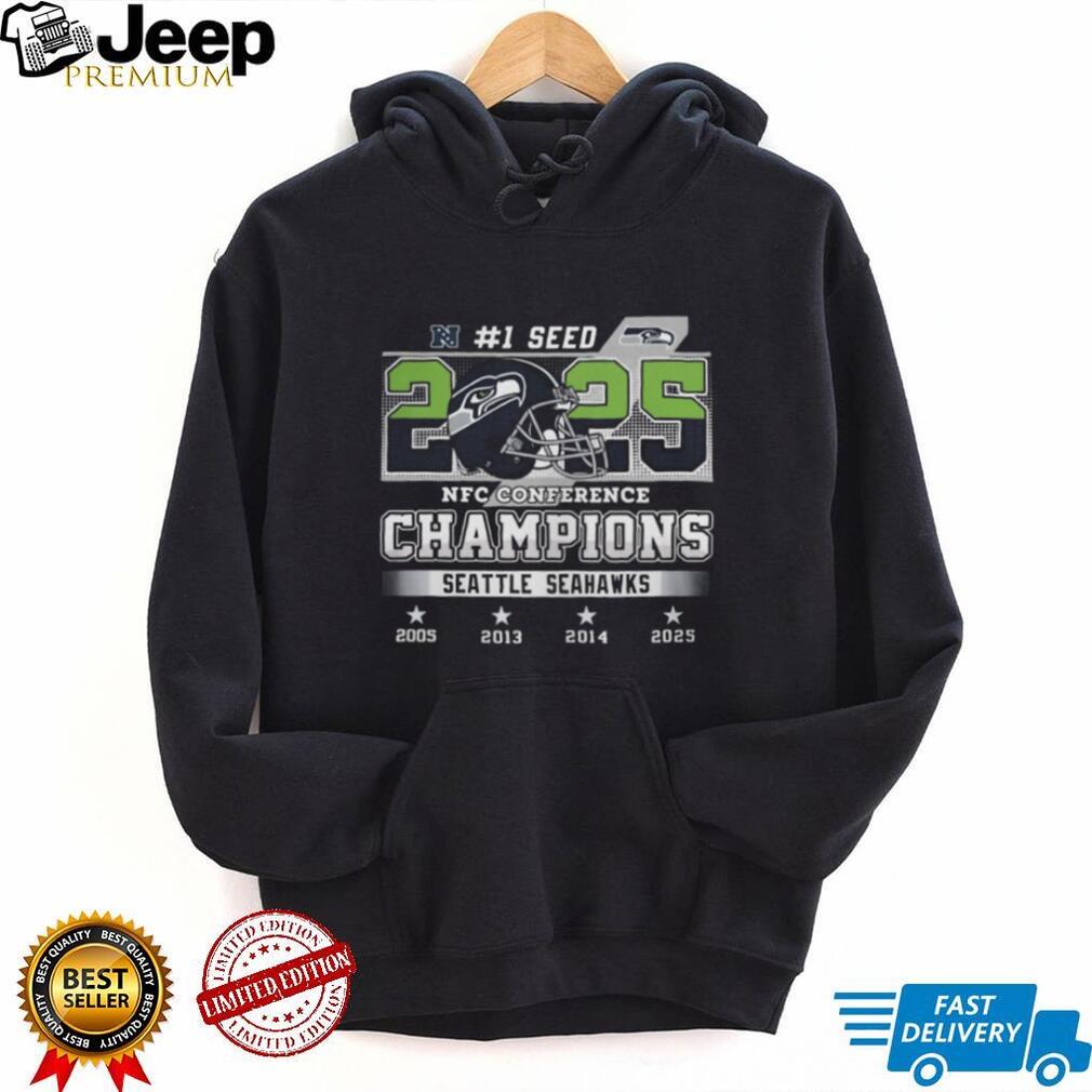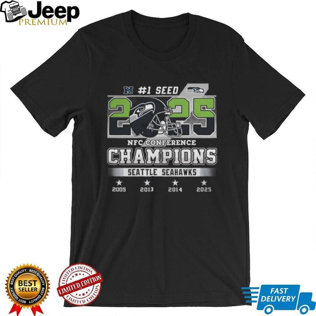 (Seattle Seahawks 2025 NFC Conference Champions #1 Seed Four Year Legacy T Shirt)Seattle Seahawks 2025 NFC Conference Champions #1 Seed Four Year Legacy T Shirt, Treat yourself or make a great gift for your loved ones