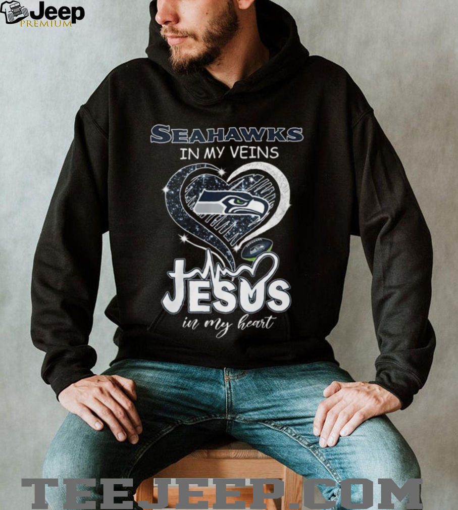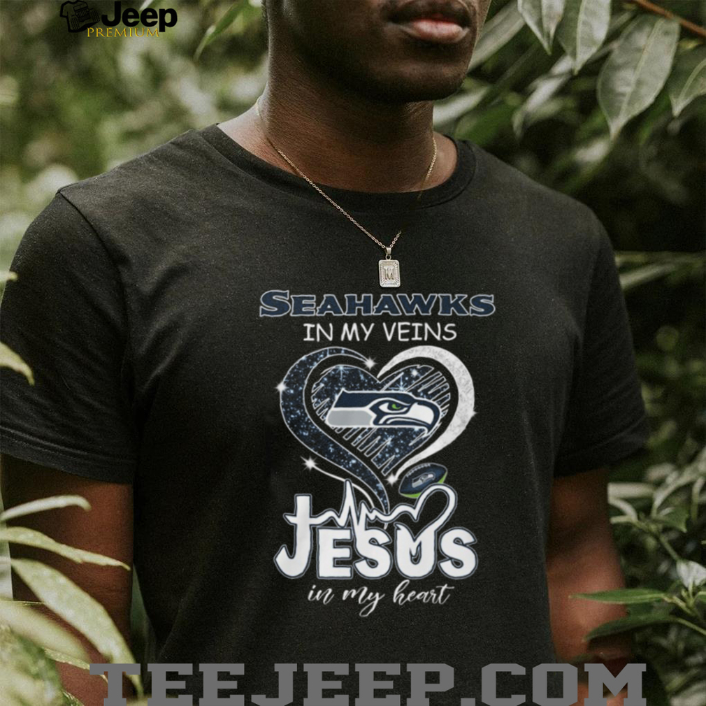()Seattle Seahawks In My Veins Jesus In My Heart Christian Fan Heart T Shirt, Treat yourself or make a great gift for your loved ones