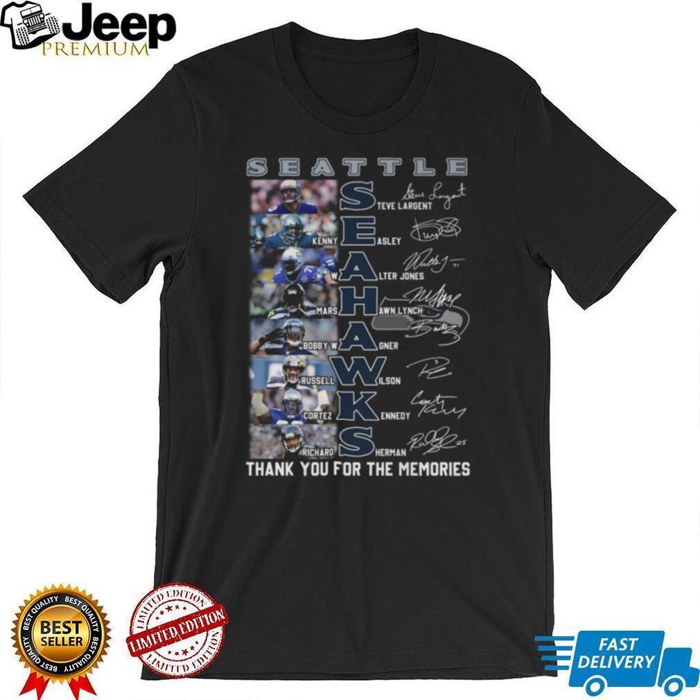 The biggest misconception is that women’s sports should be feminine. That is, pretty. Weak. Soft. Women come in the same shapes and sizes as men do. So don’t expect female athletes to be slender and fragile. They are strong and need to be. That only someone who is skinny is athletic. In some sports this is true, but not in all of them. This is especially for woman’s sports. Back to the point of this answer, some of the best rowers on my team are not skinny, and they look powerful in their team Seattle Seahawks Legends Signatures Thank You For The Memories Black Sweatshirt regardless of their build. I don’t know their exact weights and heights, but I’m guessing some of them are over weight. They don’t look the way you would think of an athletic person as. Personally, I look completely average, but I could beat anyone most people in a rowing race. I dare you to race any of the best rowers on my team, though. Unless you’re already a really good rower, you would lose by a long shot.