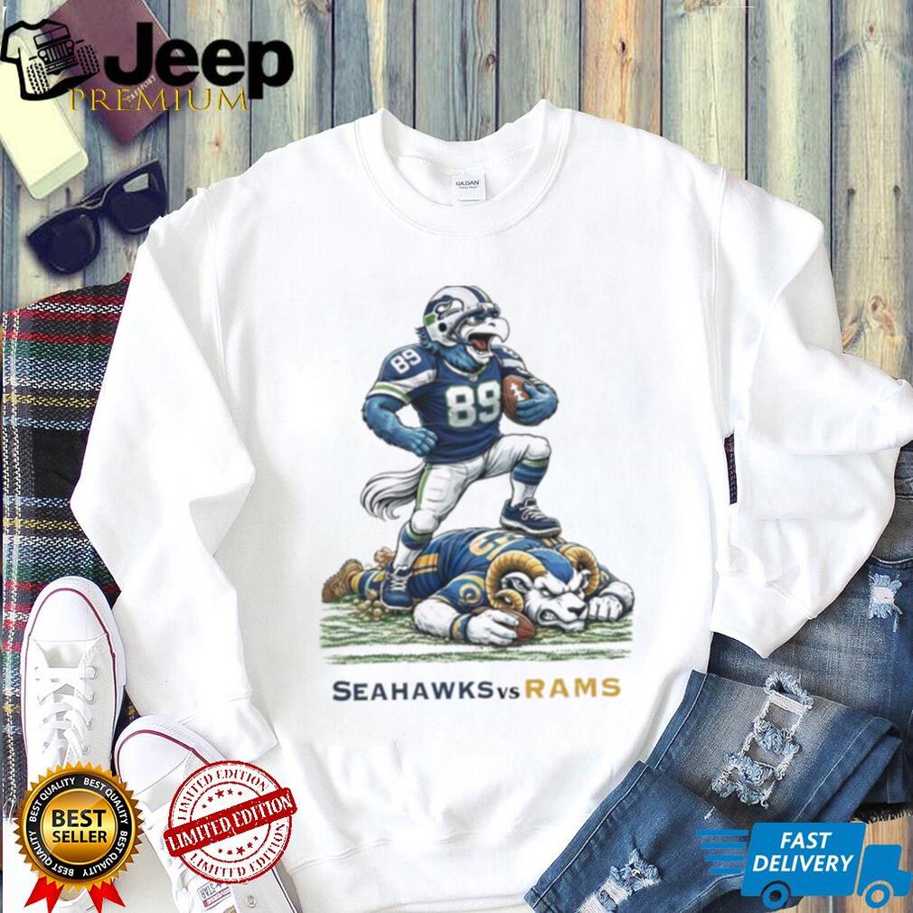 (Seattle Seahawks Mascot Stepping on LA Rams Mascot Rivalry T Shirt)Seattle Seahawks Mascot Stepping on LA Rams Mascot Rivalry T Shirt, Treat yourself or make a great gift for your loved ones