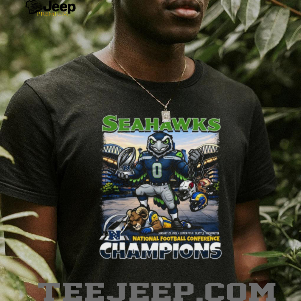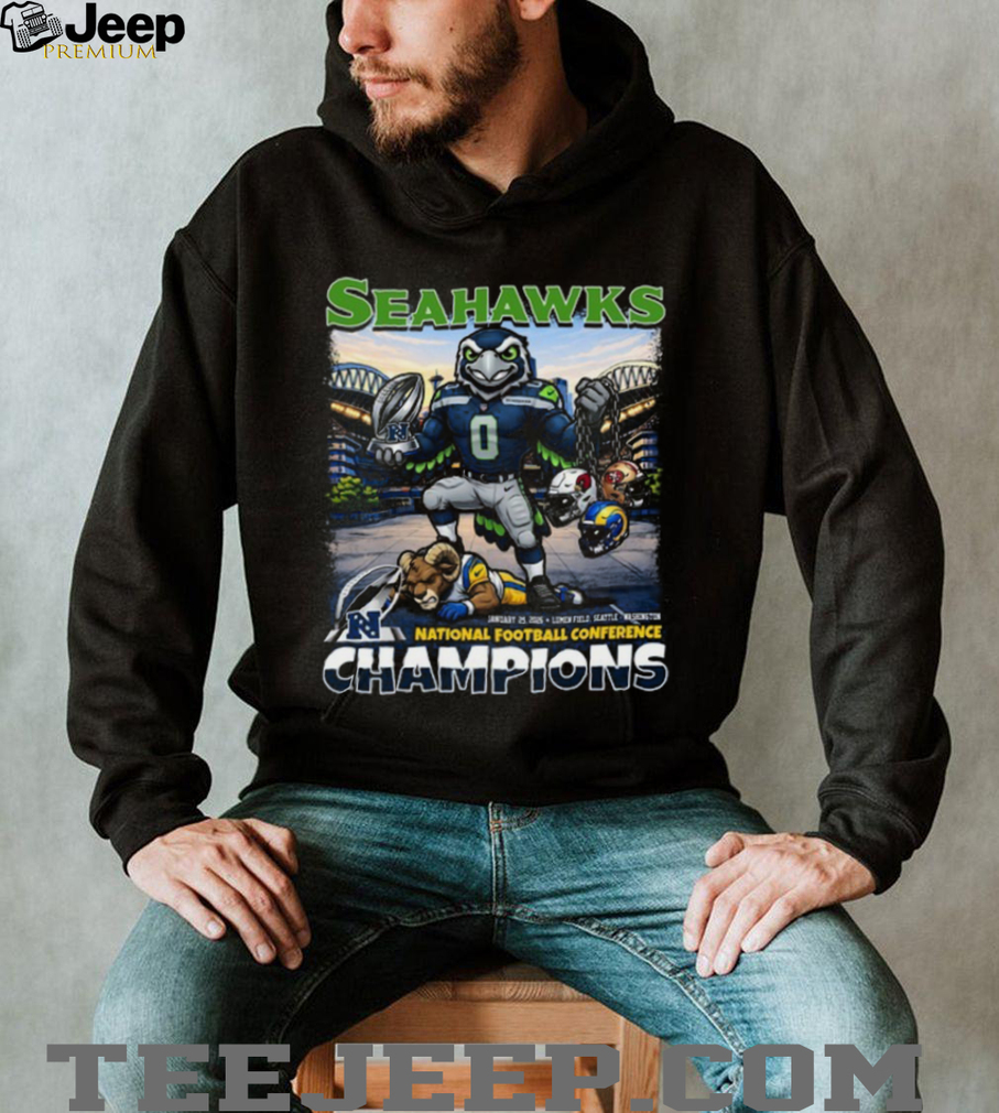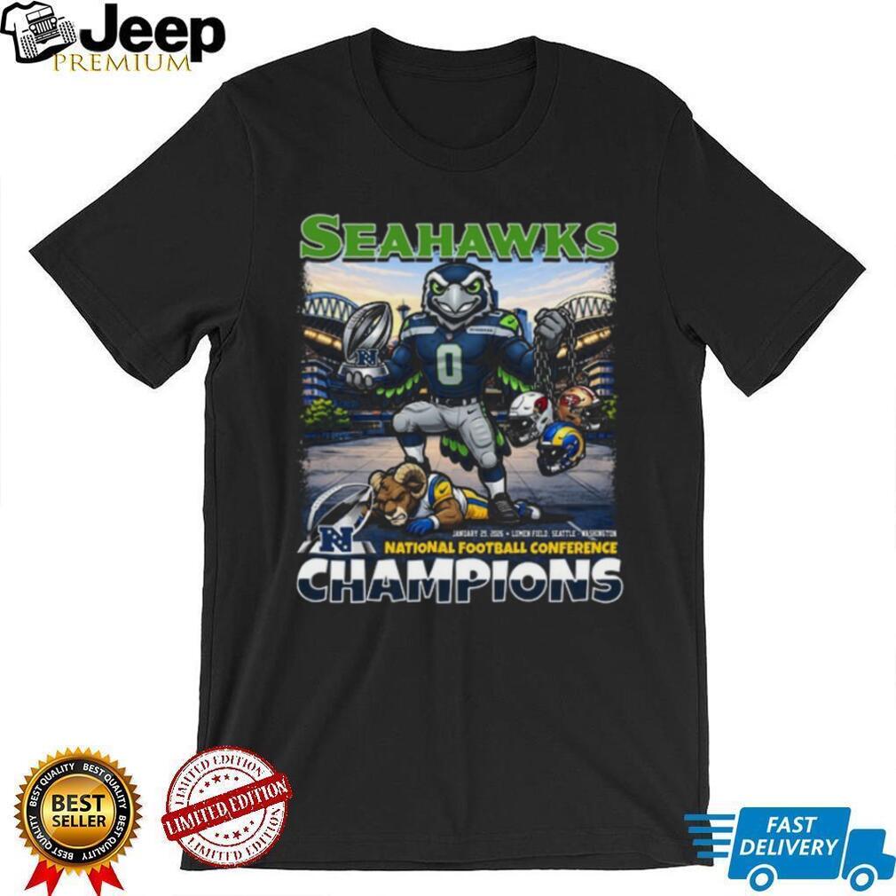 👕 About Seattle Seahawks NFC Champions Mascot Victory Graphic Tee