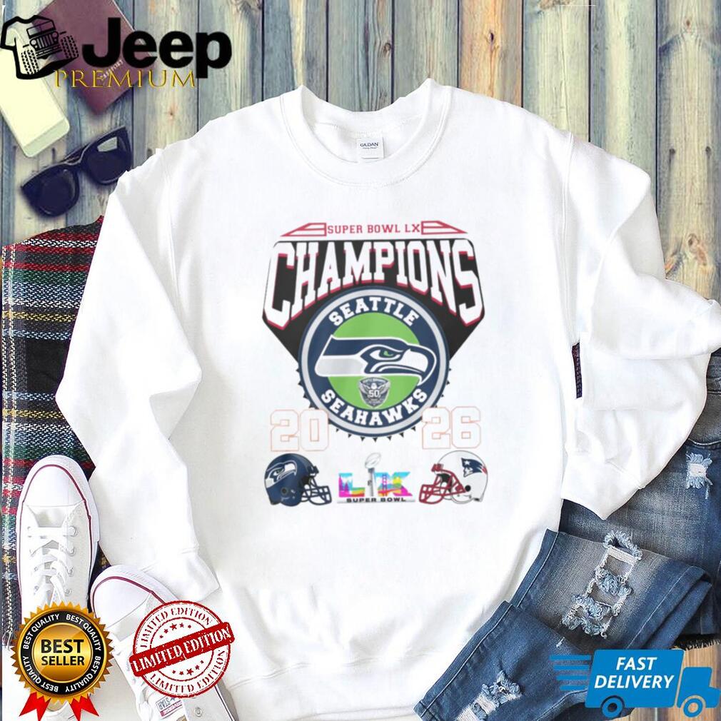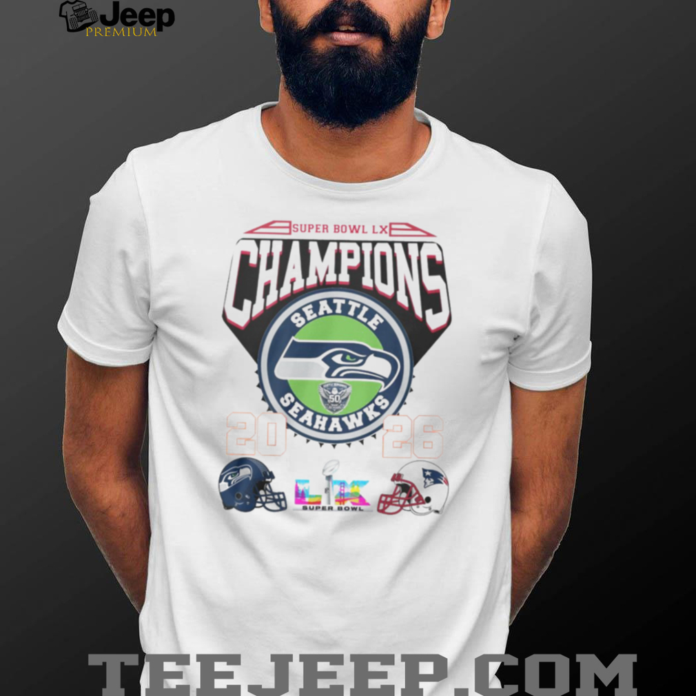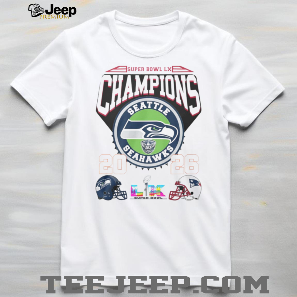 (Seattle Seahawks Super Bowl LX Champions 2026 Helmet Matchup White T Shirt)Seattle Seahawks Super Bowl LX Champions 2026 Helmet Matchup White T Shirt, Treat yourself or make a great gift for your loved ones