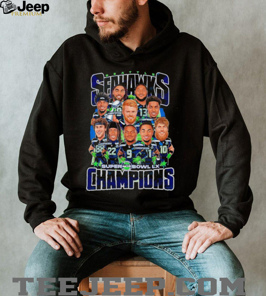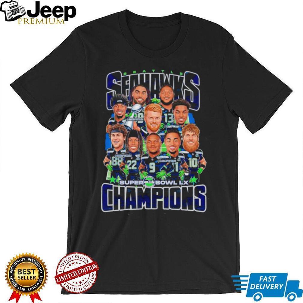 👕 About Seattle Seahawks Super Bowl LX Champions Caricature Players T Shirt