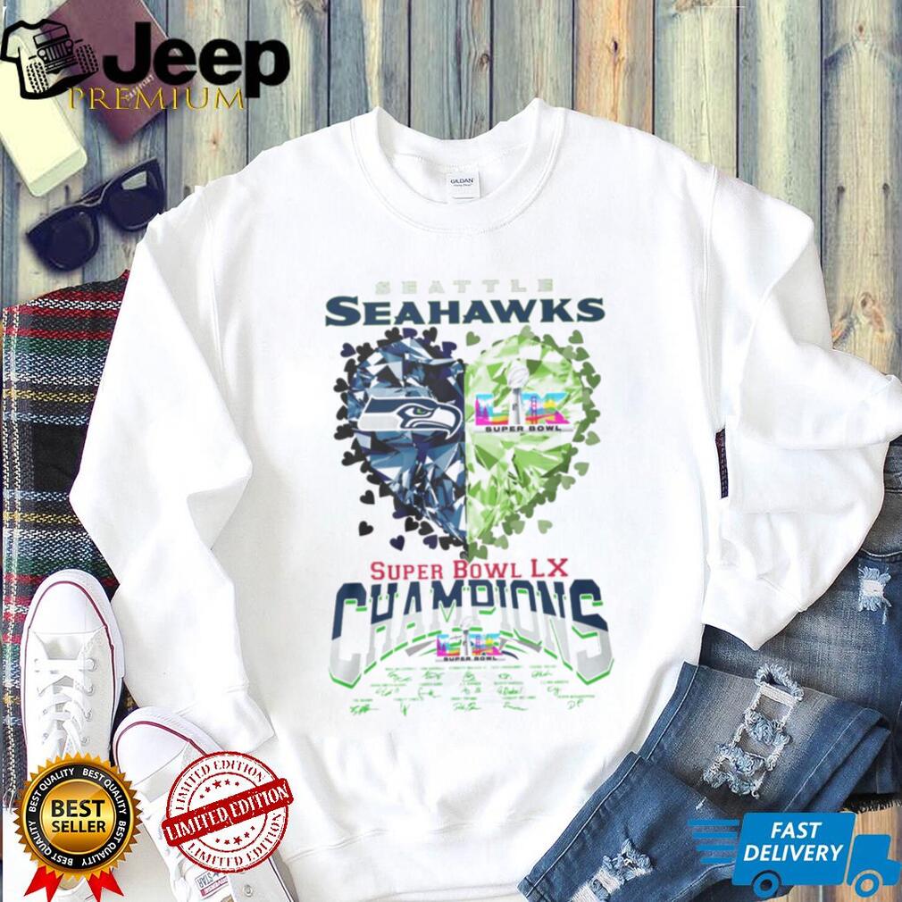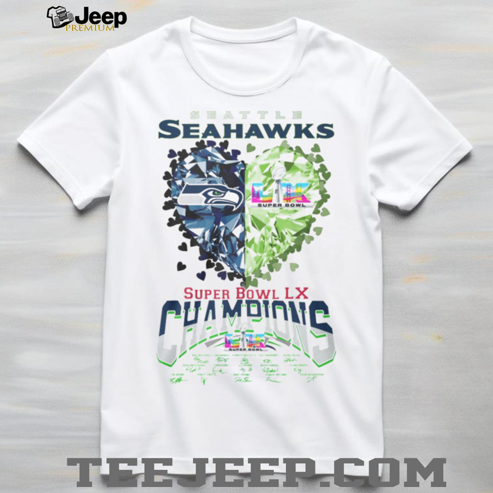 (Seattle Seahawks Super Bowl LX Champions Diamond Heart Logo White T Shirt)Seattle Seahawks Super Bowl LX Champions Diamond Heart Logo White T Shirt, Treat yourself or make a great gift for your loved ones