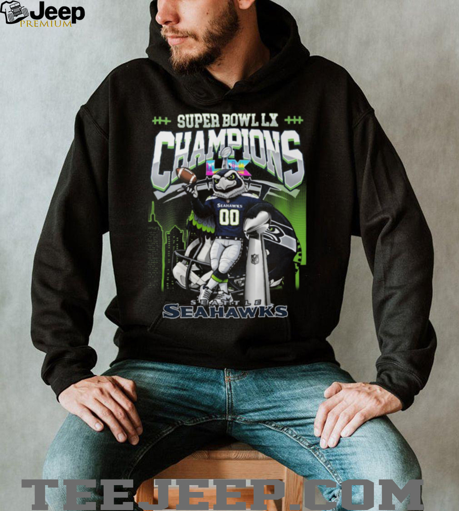 👕 About Seattle Seahawks Super Bowl LX Champions Mascot & Trophy Commemorative T Shirt