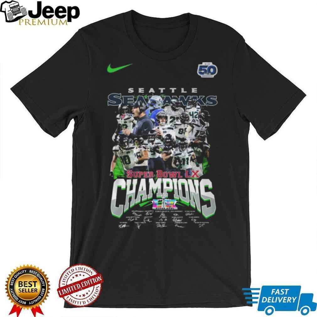 👕 About Seattle Seahawks Super Bowl LX Champions Team Roster & Signatures T Shirt