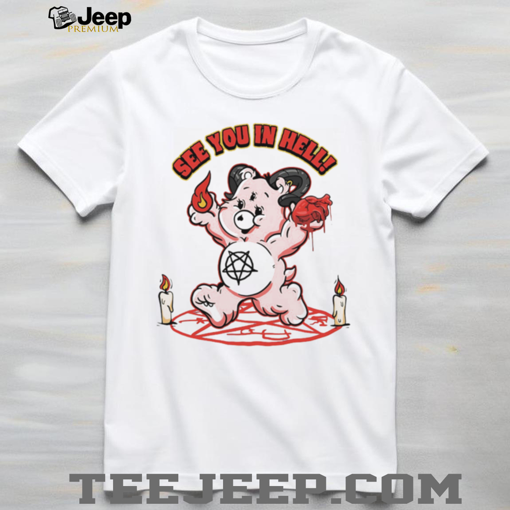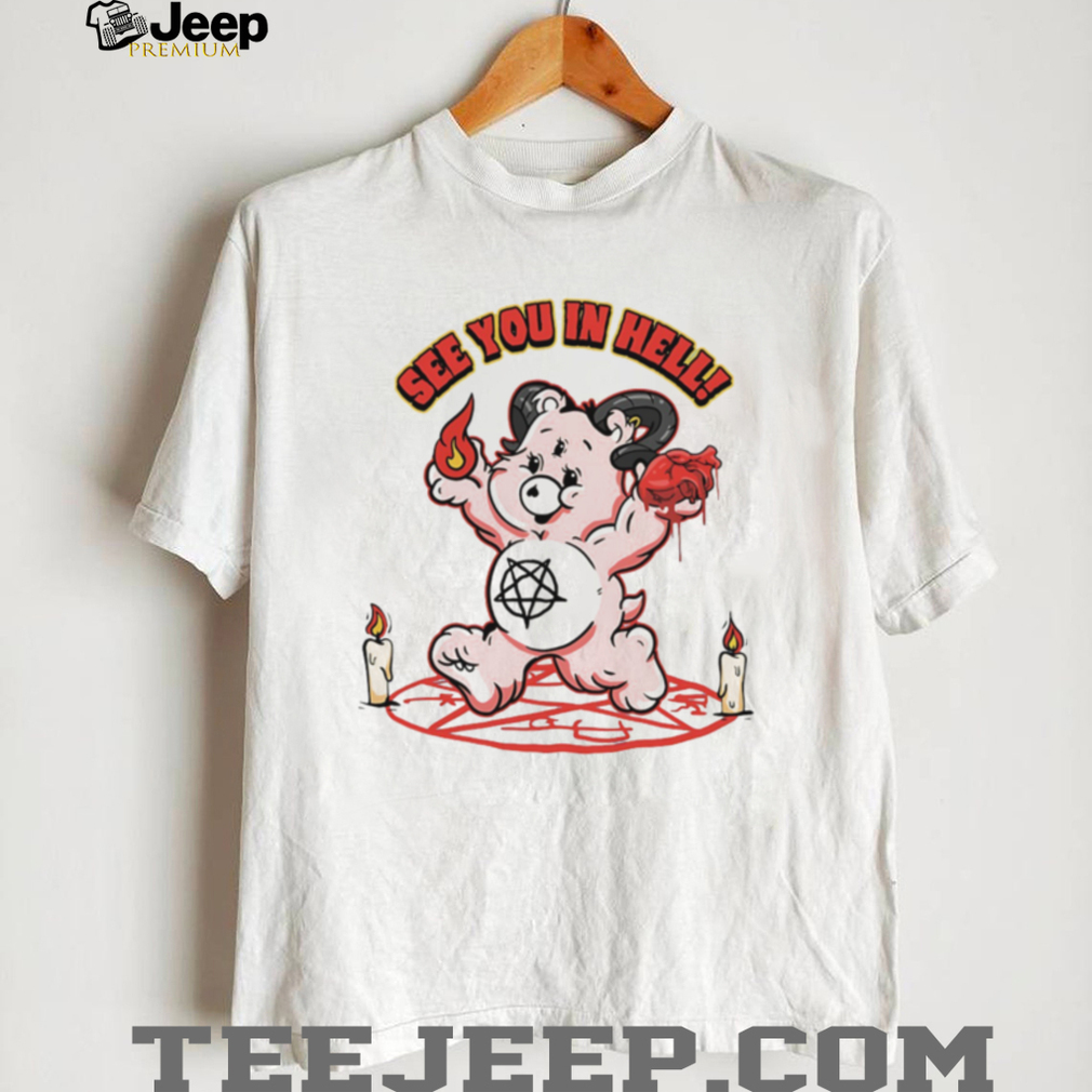 (See You In Hell Satanic Evil Care Bear Parody Pentagram Occult Goth T Shirt)