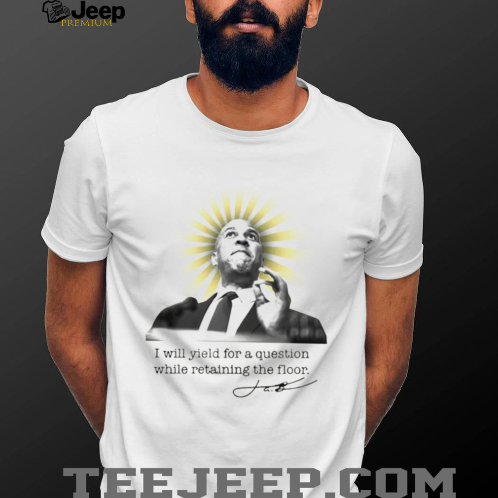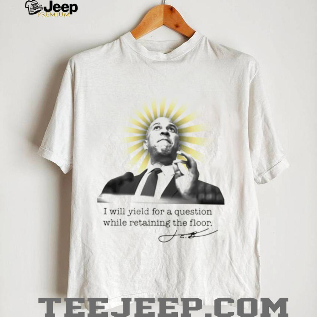 A “Senator Cory Booker signature I yield for a question while retaining the floor shirt” immortalizes a specific and recognizable phrase frequently used by Senator Cory Booker during Senate proceedings. This phrase, “I yield for a question while retaining the floor,” is a parliamentary maneuver that allows him to engage in a brief exchange without losing his speaking time. The “signature” element suggests that this phrase has become a hallmark of his speaking style, making it a distinctive and memorable part of his political persona. The shirt transforms this procedural phrase into a piece of political merchandise, celebrating his unique approach to Senate debate.
