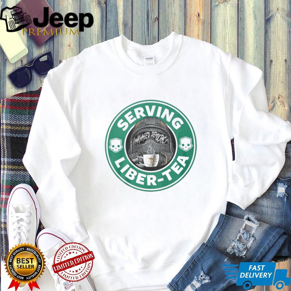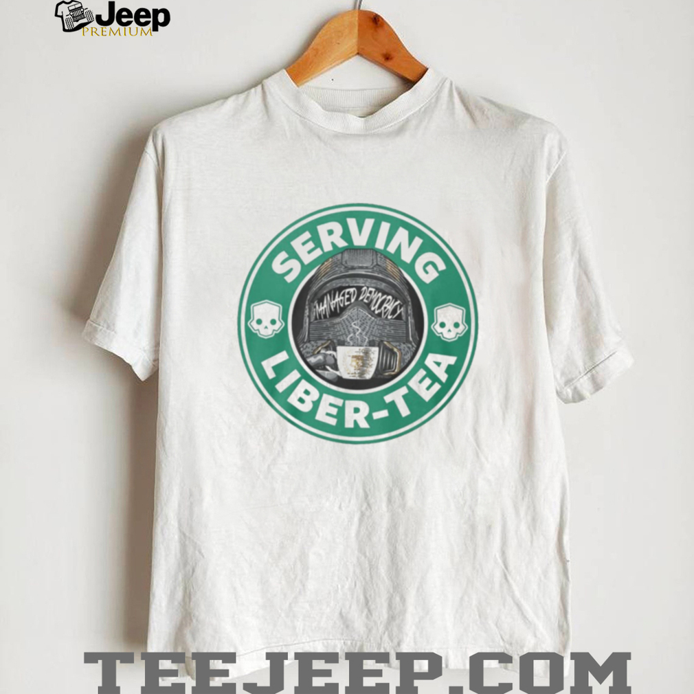 ()Serving Liber Tea Managed Democracy Coffee Logo Parody T Shirt, Treat yourself or make a great gift for your loved ones
